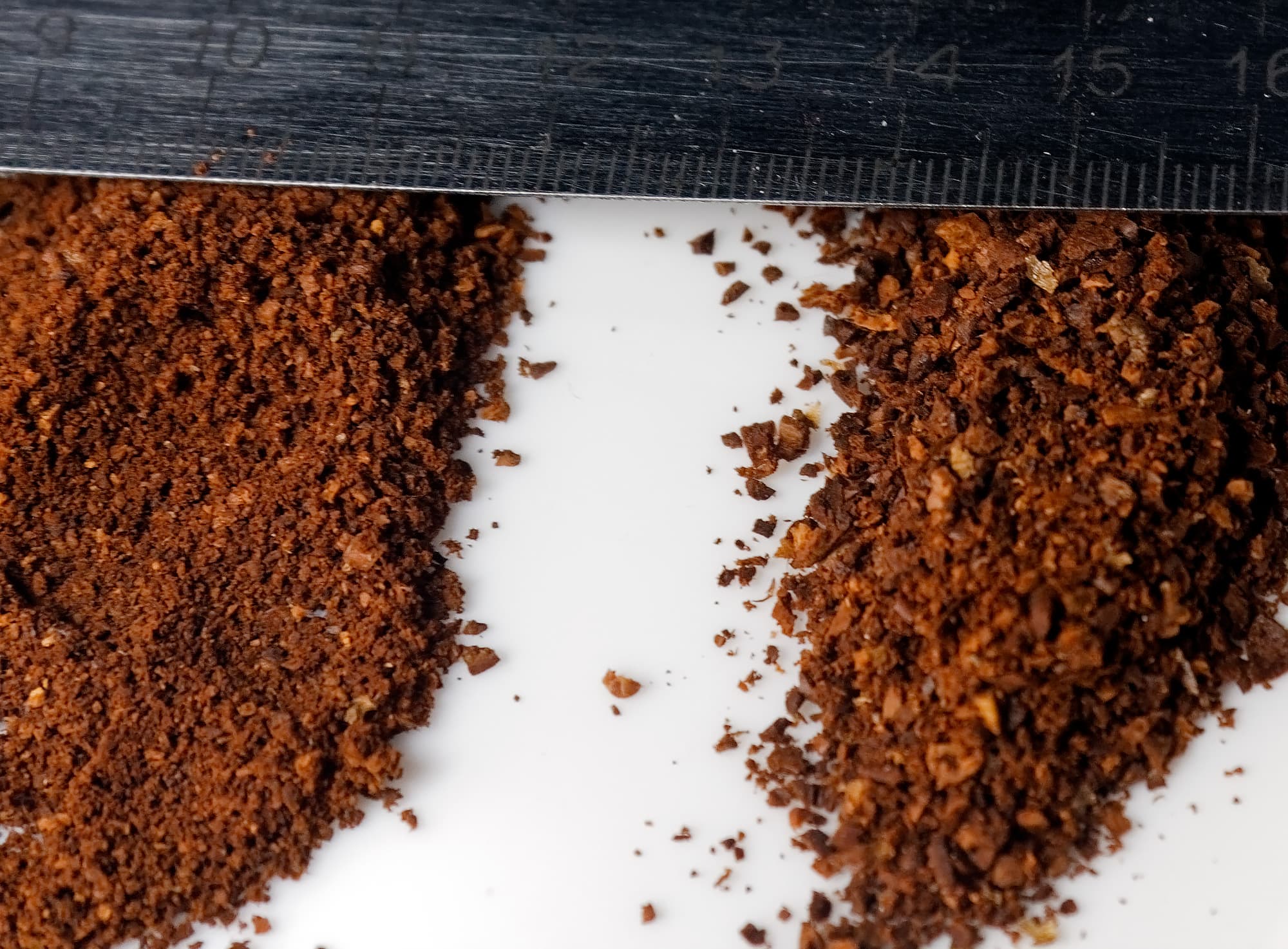 Слева — Baratza Encore, справа — Kitfort KT-744. Как мы видим, качество помола оказалось соизмеримым. Конечно, было бы наивно ожидать, что бюджетный Kitfort KT-744 продемонстрирует то же качество при более чем вдвое низкой цене. Отличия есть.