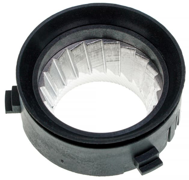 Внешний жернов у кофемолки — съемный. Он оснащен резиновым кольцом, обеспечивающим плотную стыковку с контейнером для зерен. Упомянем, что данное кольцо — также «слабое» место любой жерновой кофемолки. Обращаться с ним нужно аккуратно, чтобы случайно не порвать. Производители, заботящиеся о поддержке своих приборов, обязательно включают запасные кольца в число запчастей, которые можно приобрести напрямую либо через сервисные центры.