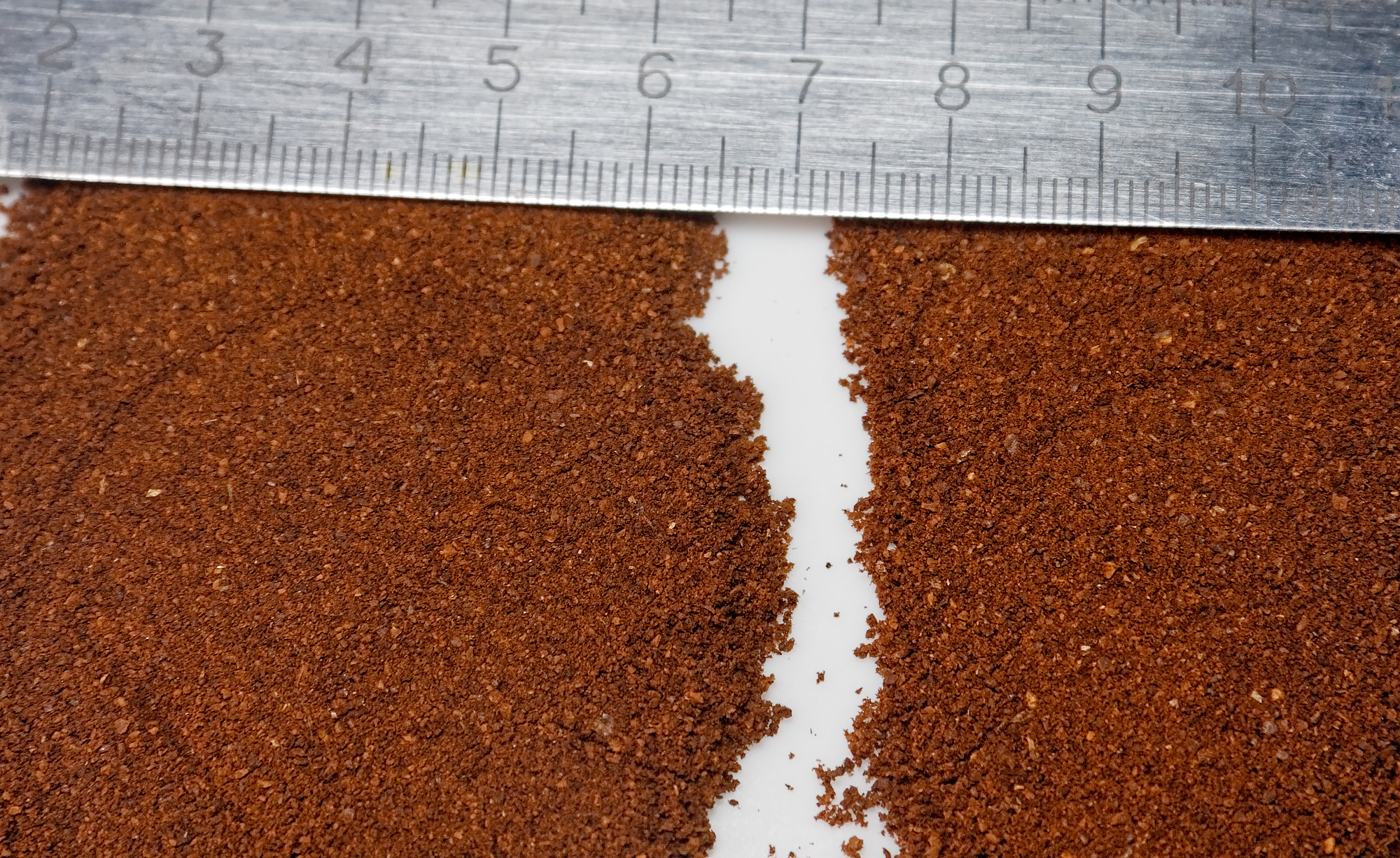 Как видно на фото, справа мы можем наблюдать повышенное число крупных фракций. Однако, повторимся, итоговое качество помола с учетом ценовой категории нашей кофемолки мы оцениваем как довольно высокое.