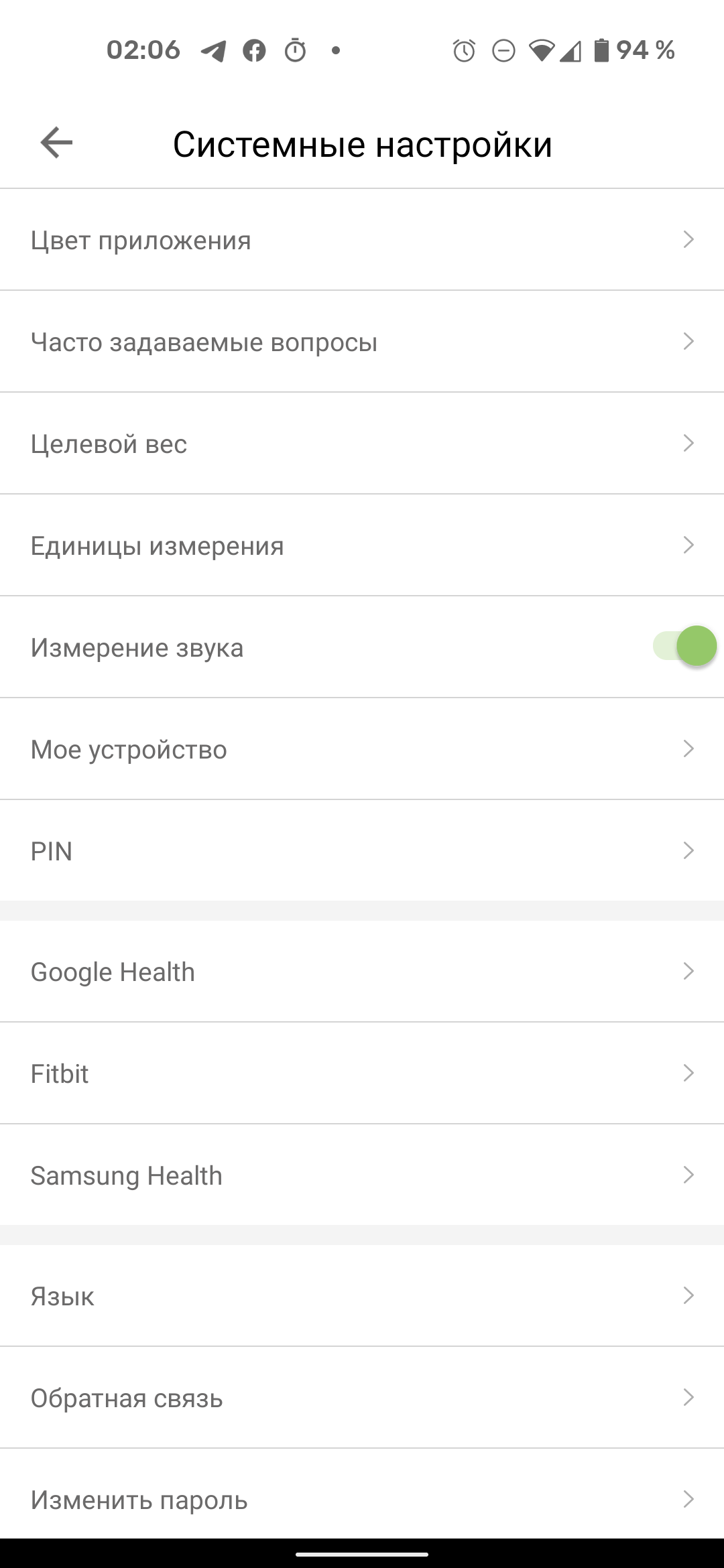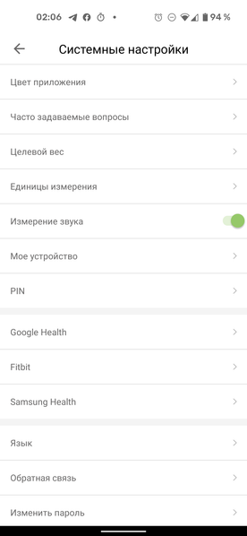 В разделе настроек можно закрыть приложение PIN-кодом, указать вес, к которому стремится пользователь, настроить единицы измерения, язык и внешний вид программы. Также имеет смысл подключить приложение к аккаунтам Google Health, Fitbit или Samsung Health.