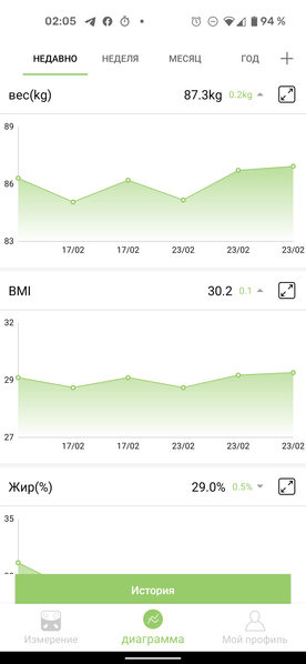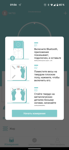 После этого пользователь может покинуть платформу весов — они автоматически выключатся через десять секунд. На главном экране приложения в этот момент появляются свежие результаты измерений.