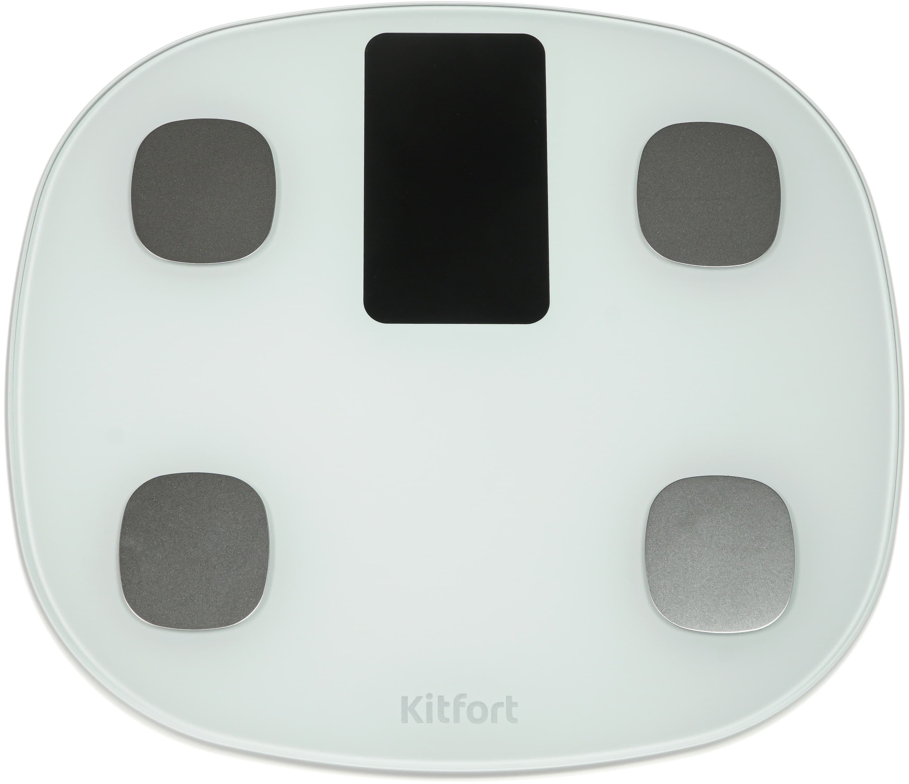Верхняя панель весов изначально была прямоугольником, но воля дизайнера сильно закруглила ей углы. Она сделана из закаленного стекла с молочно-белой внутренней подложкой и снабжена четырьмя контактными пластинами из серебристого металла — контактами для проведения биоимпедансного анализа. Они заодно являются и метками правильного расположения стоп.