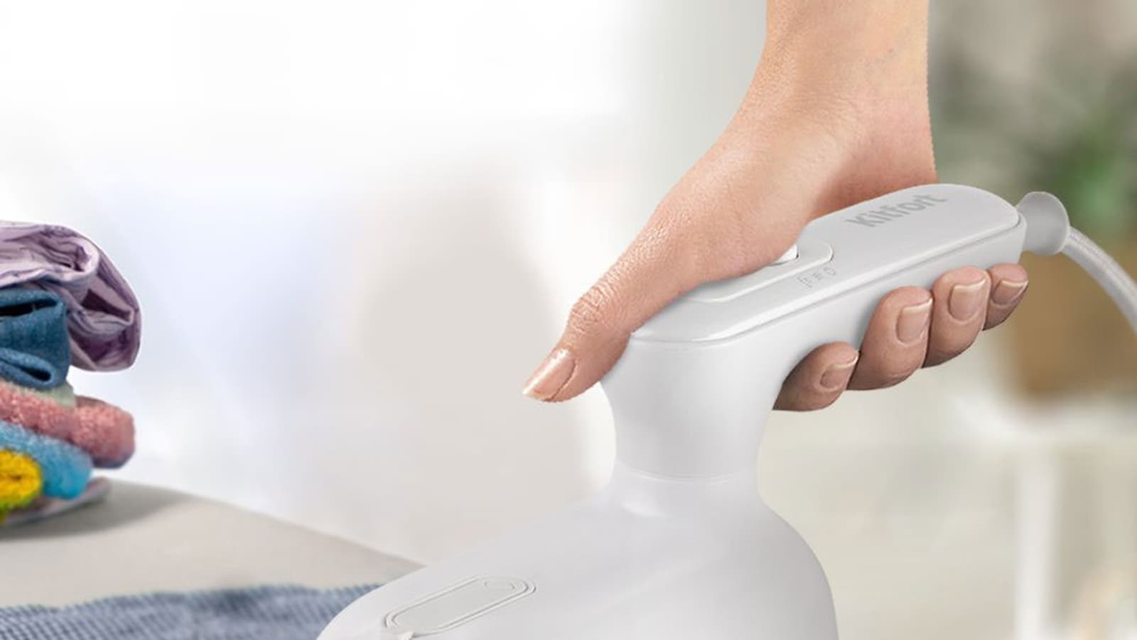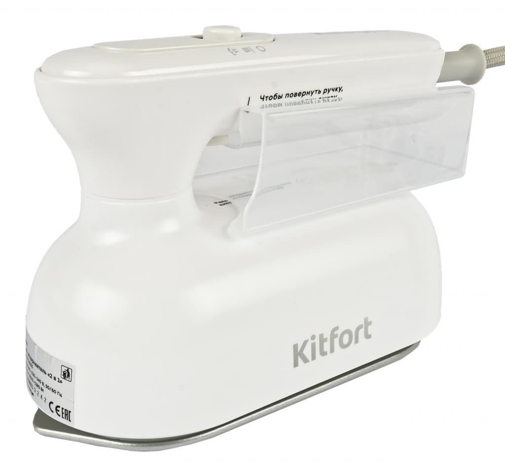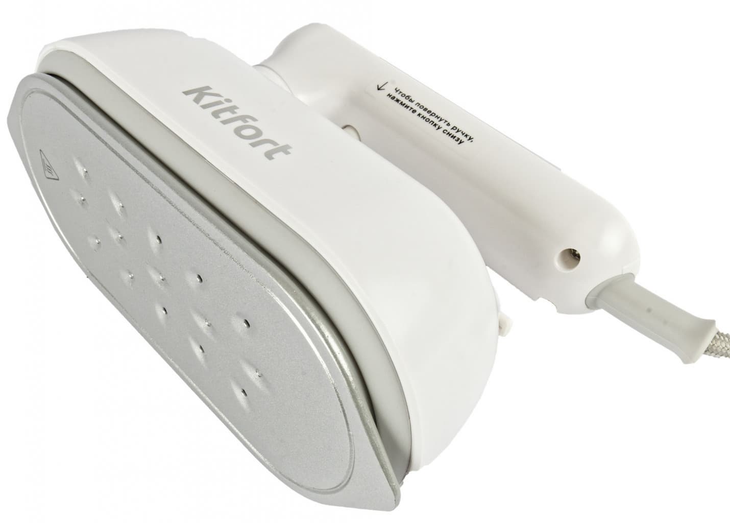 Kitfort KT-9105 — элегантен и мил. Обаяния ему добавляет потрясающая компактность, в собранном виде прибор занимает весьма небольшое место в чемодане или в тумбочке. Между тем, он оснащен помпой (водяным насосом), вода из небольшого резервуара подается в бойлер, пар же выходит через паровые сопла на рабочей поверхности. У этого малыша два режима работы: сухая глажка и подача пара. Его поверхность серьезно больше, чем у многих ручных отпаривателей, это позволяет пользоваться им еще и как обычным утюгом.