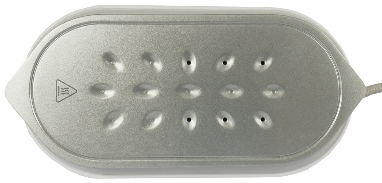 У подошвы отпаривателя острый носик, удобно огибающий трудные места вокруг пуговиц, декоративных деталей — приятный бонус модели.