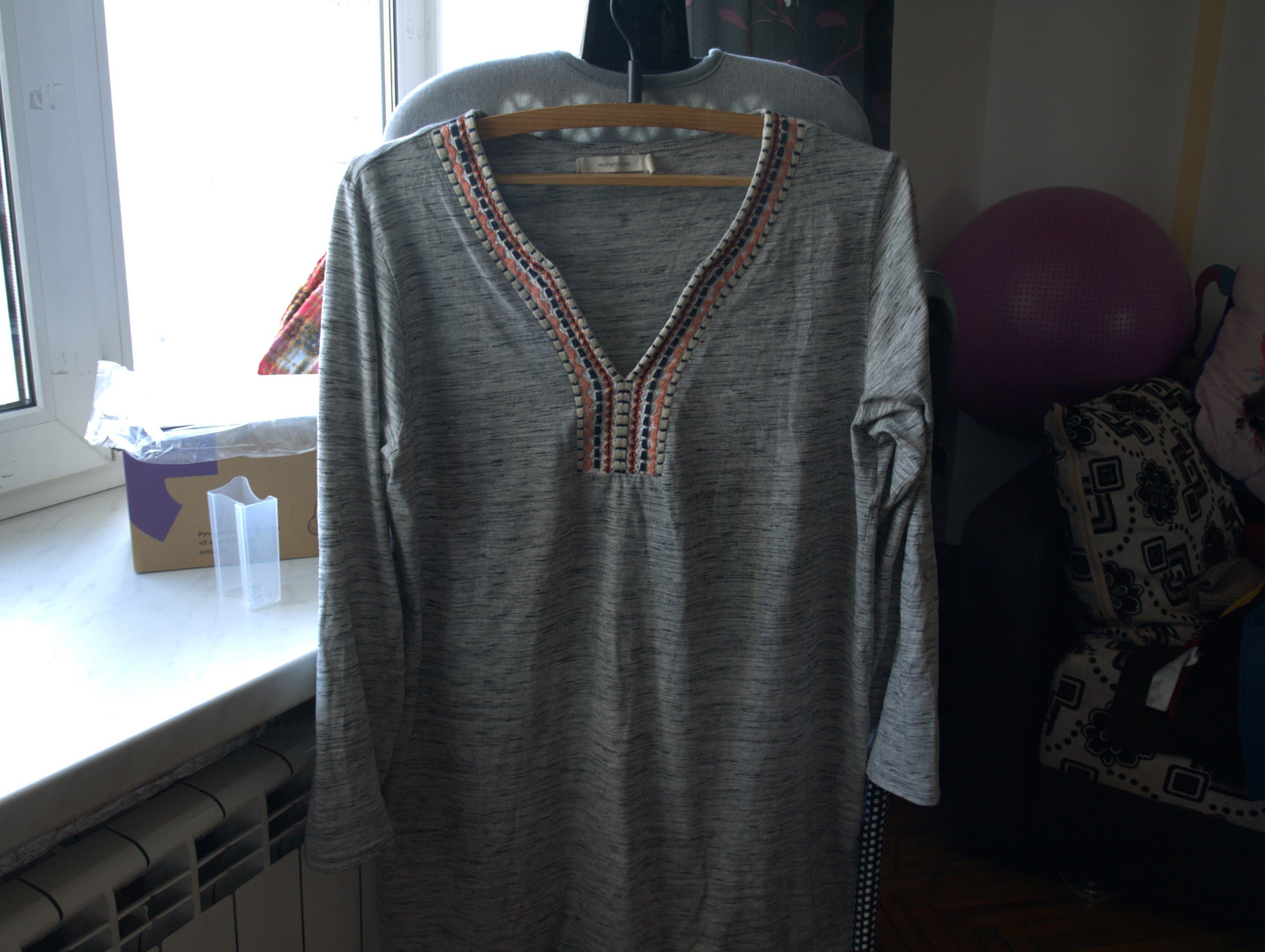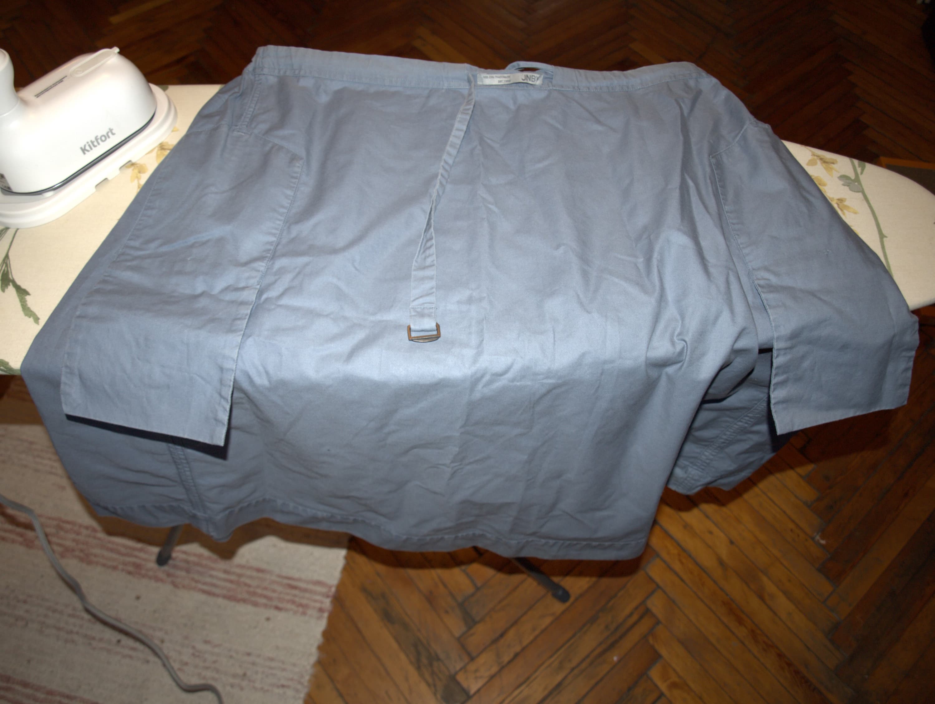 Красивая, но не самая практичная вещь, капризная к глажке. Kitfort KT-9105 принял задачу и прекрасно ее решил. Использовали горизонтальный, сухой вариант. Приятно, что отпариватель не засалил швы и отлично справился с мелкими складками у пояса.