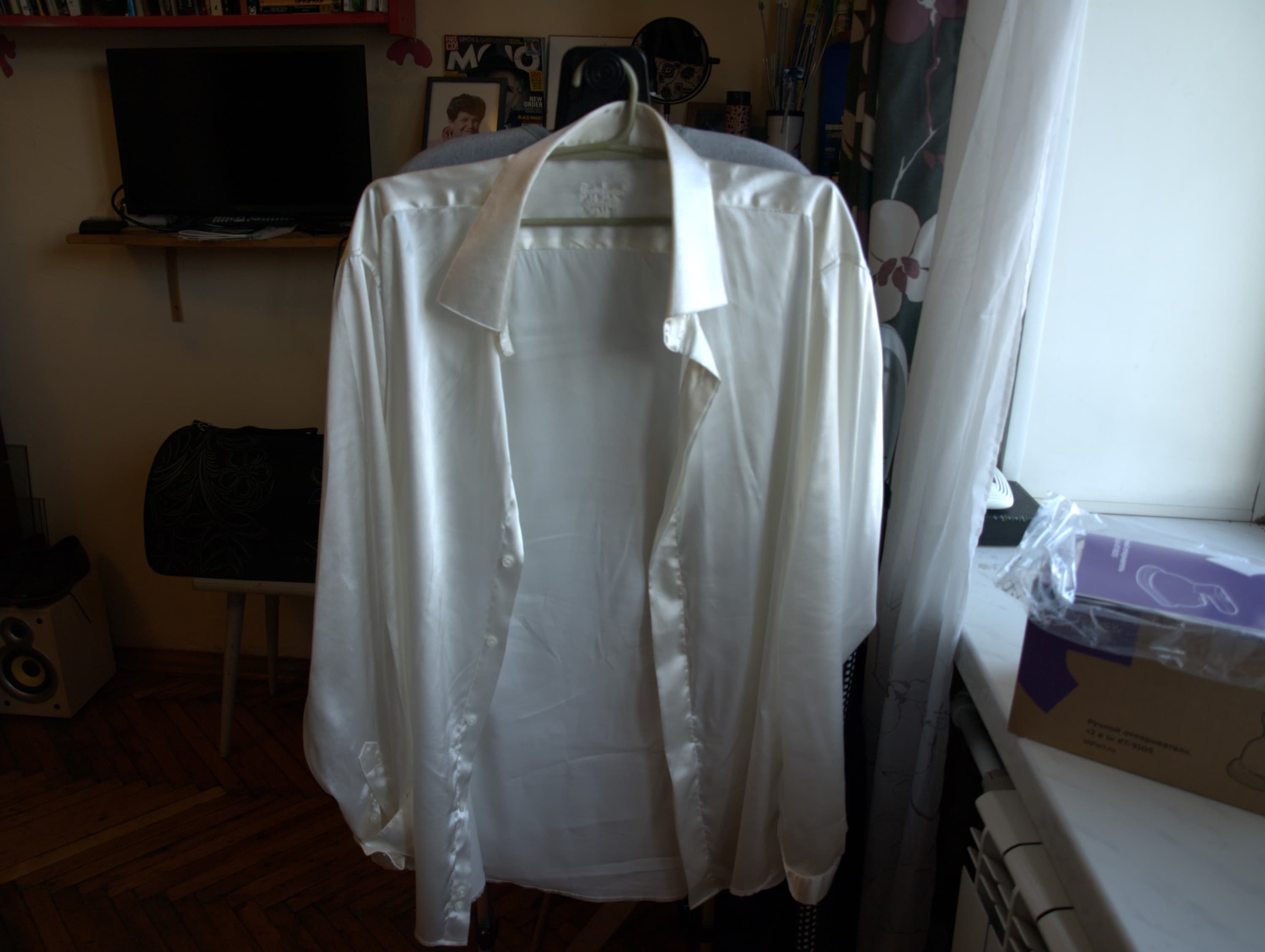 Пар быстро привел парадную рубашку в порядок, деликатно и аккуратно. Традиционно трудные места у рукавов и на боковых швах не стали препятствием для прибора. Менее пяти минут, и ткань приобрела опрятный вид.