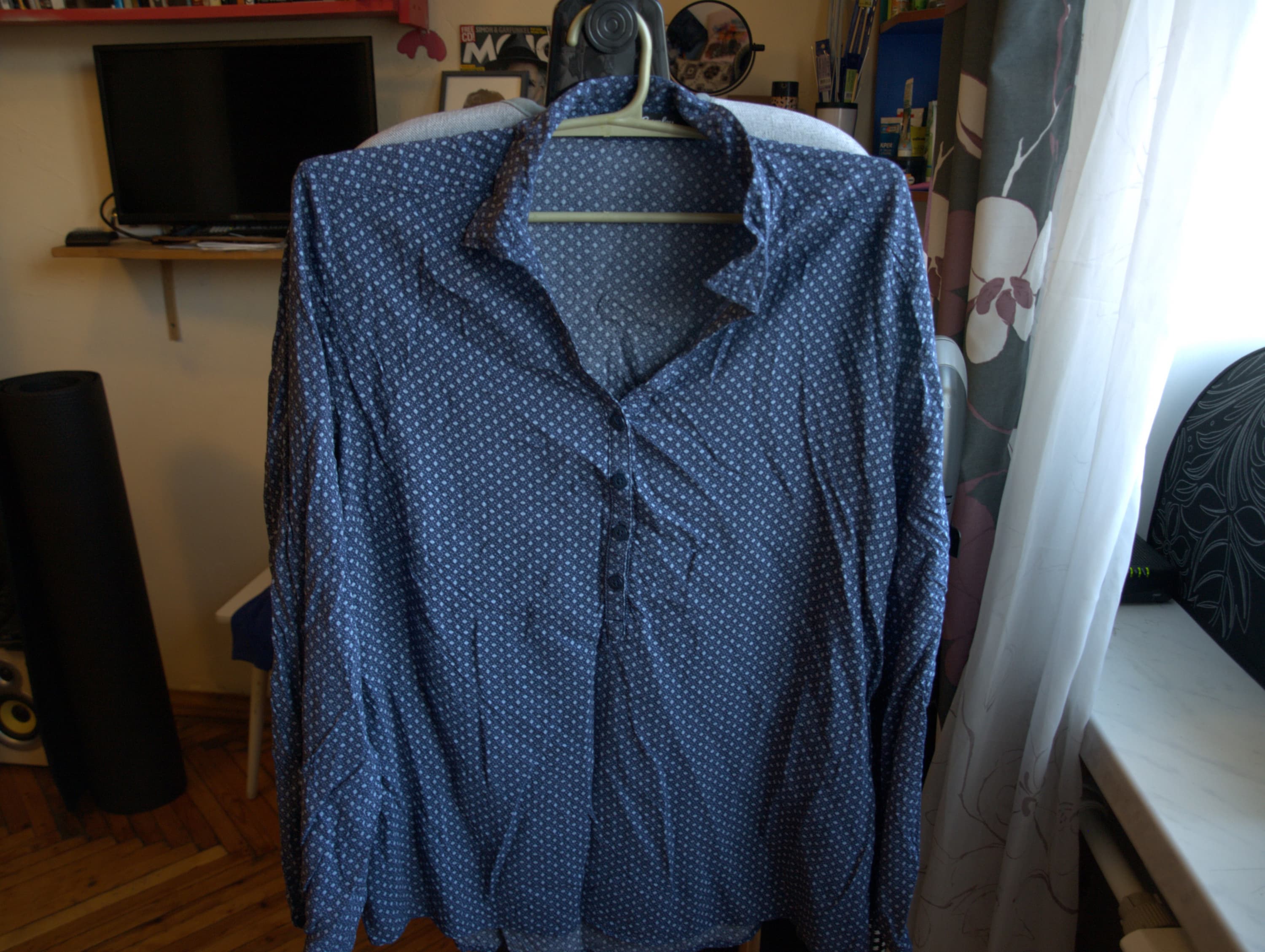 Очень удобная деталь гардероба, обычно не сильно сминаемая. Кроме двух исключений: после стирки и торопливого хранения в дорожной сумке. Отпариватель тестировали на двух тканях с разным уровнем плотности и кроем. Трудные места у воротника и декоративных вставок для Kitfort KT-9105 — не проблема. После обработки вещи выглядят превосходно.