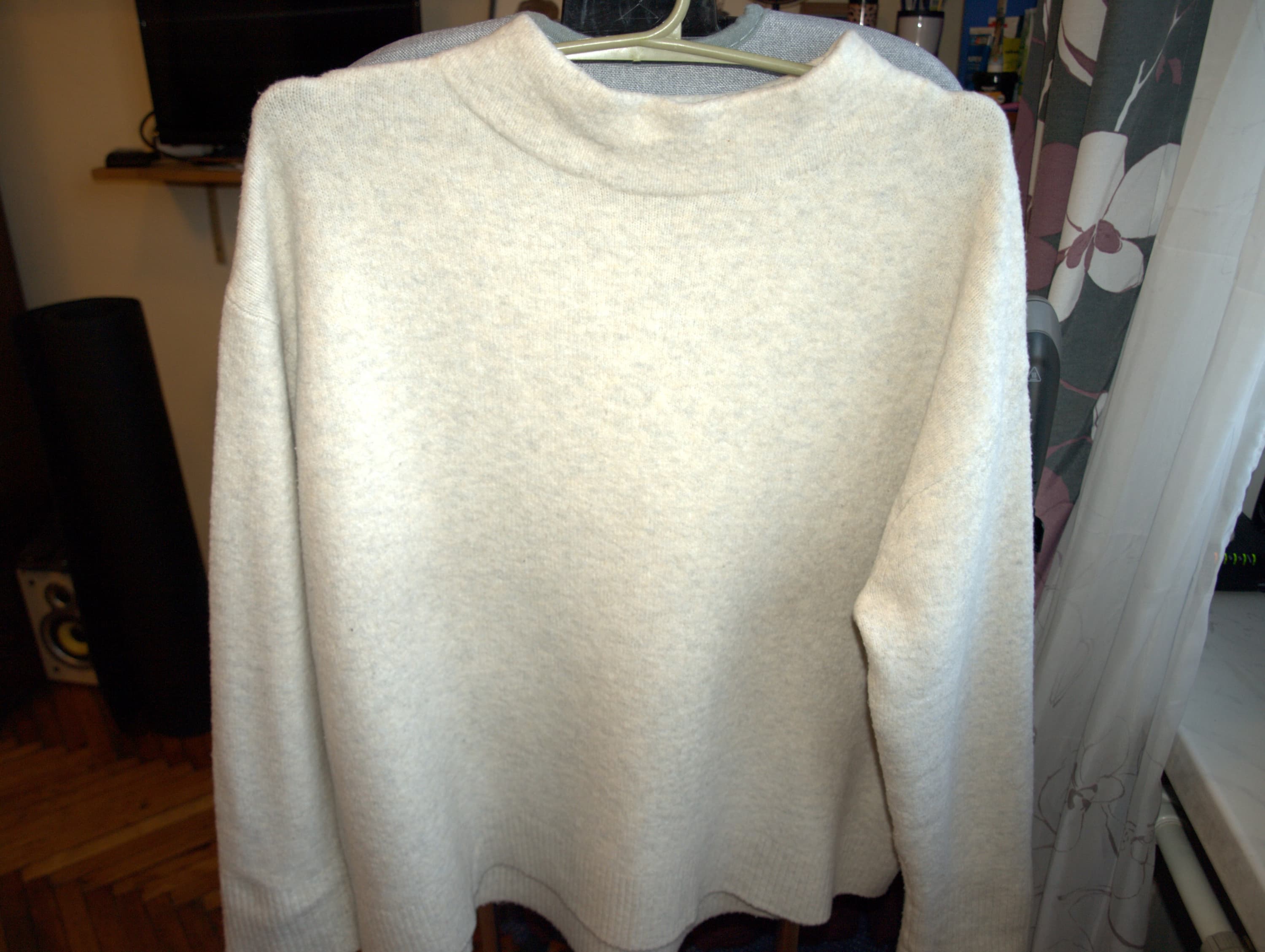 Снимок, к сожалению, не очень четко передает результат. Такие кофты трудно обрабатывать, а они быстро деформируются при частой носке и впитывают запахи как губка. Kitfort KT-9105 не составило труда вертикально и горизонтально разгладить вещь, вернуть ей цвет и форму, освободить от запаха никотина.