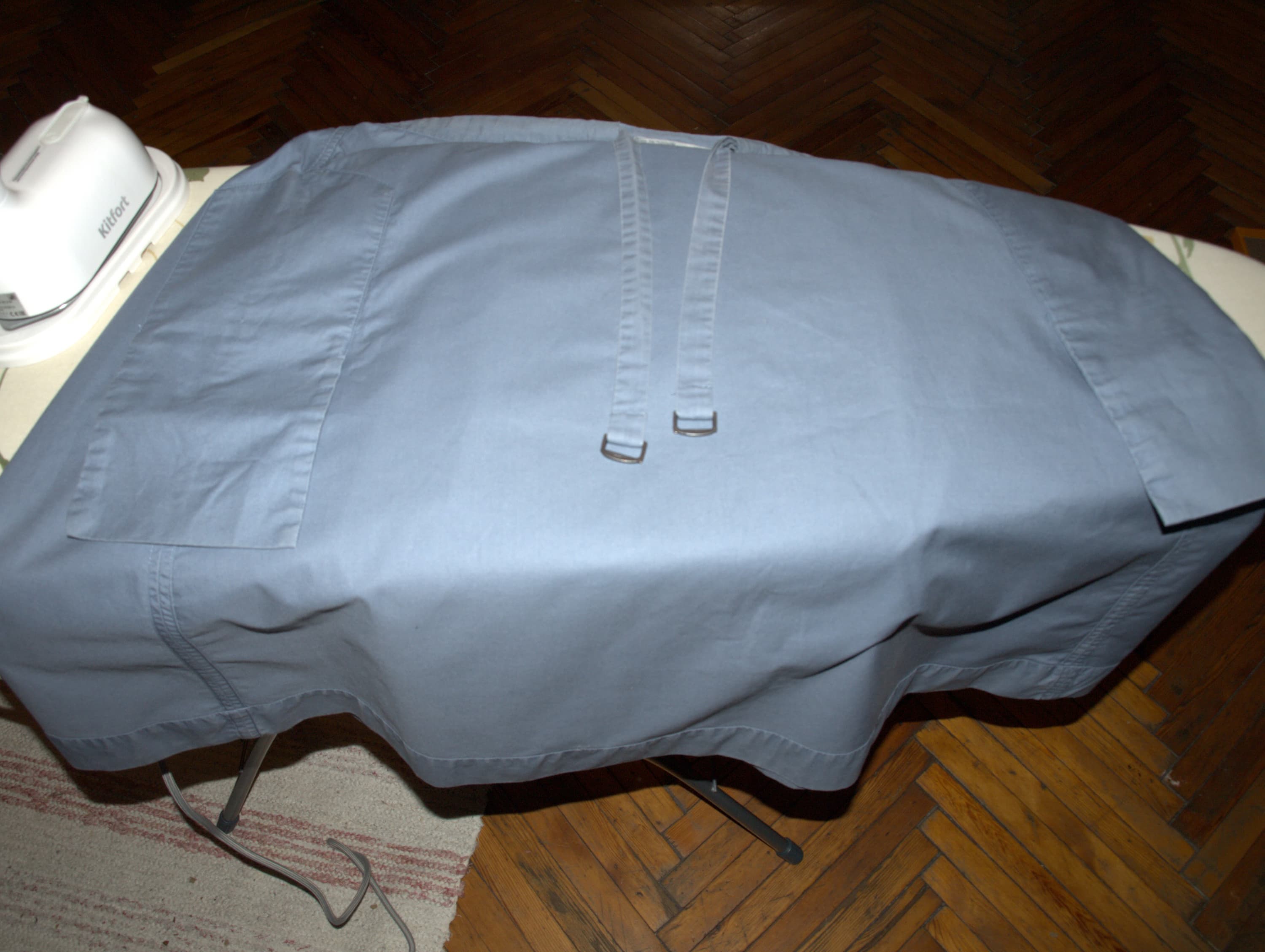 Перед первым использованием по инструкции размотали шнур, протерли прибор влажной тряпкой. Прибор позволяет работать без гладильной доски, для чистоты эксперимента использовали оба режима. Для вертикальной обработки использовали спинку большого отпаривателя Kitfort и пластмассовые плечики. Рядом установили гладильную доску.
