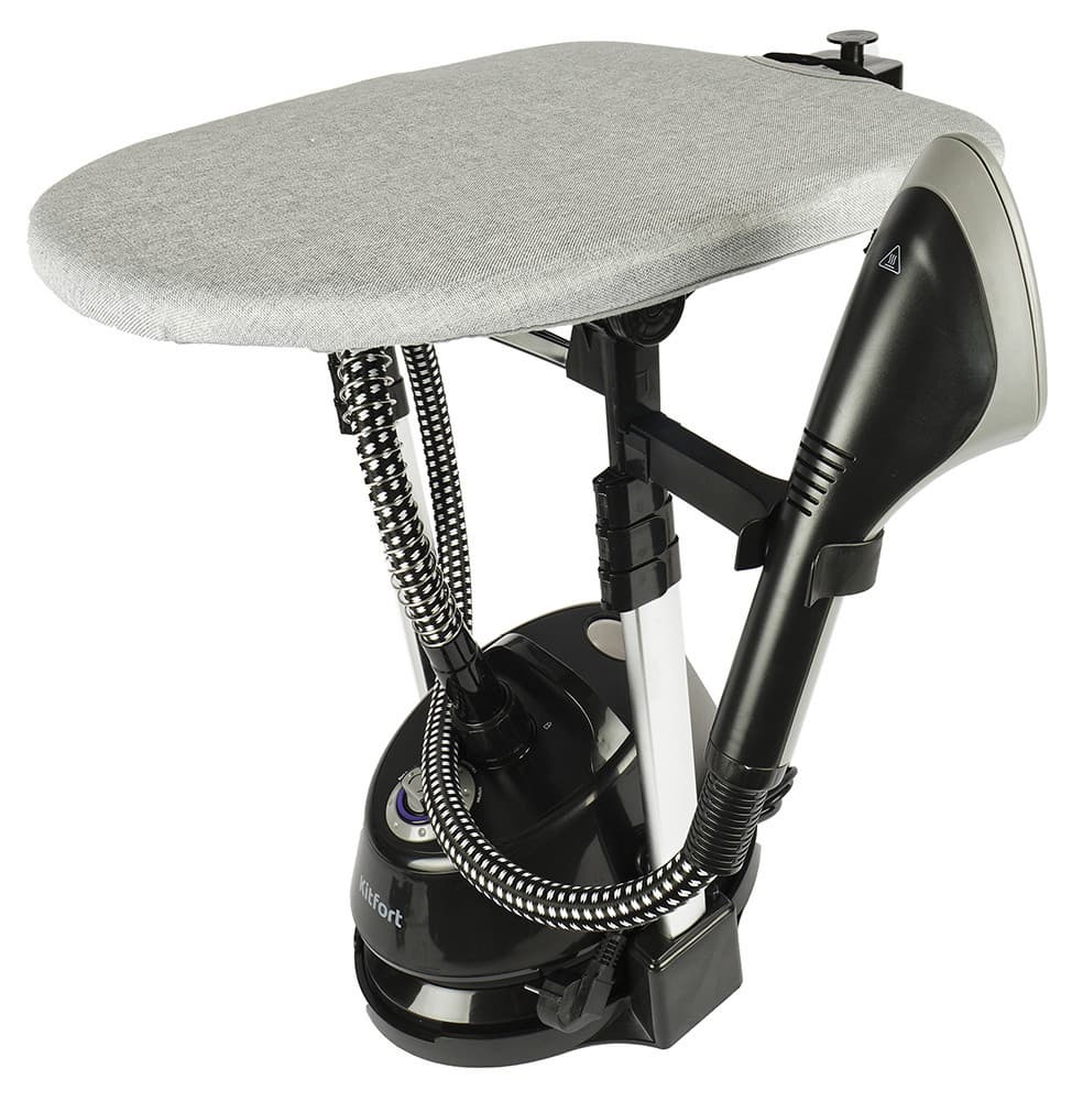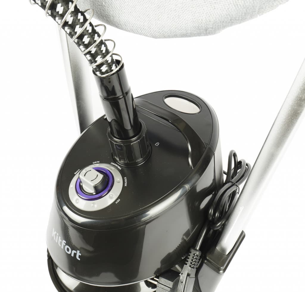 Вертикальная позиция, минимальные режимы. Хорошо освежает, не вредит форме, не допускает заглаживания швов. Kitfort KT-9112 можно быстро привести вчерашнюю водолазку в надлежащий вид.