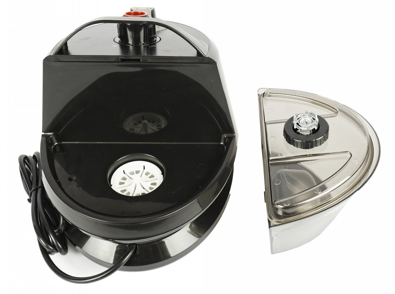 Общая емкость — 1,35 л. Сверху есть удобная выемка для извлечения резервуара из корпуса. На нем самом отметки уровня воды. Все детали достаются и откручиваются без усилий.