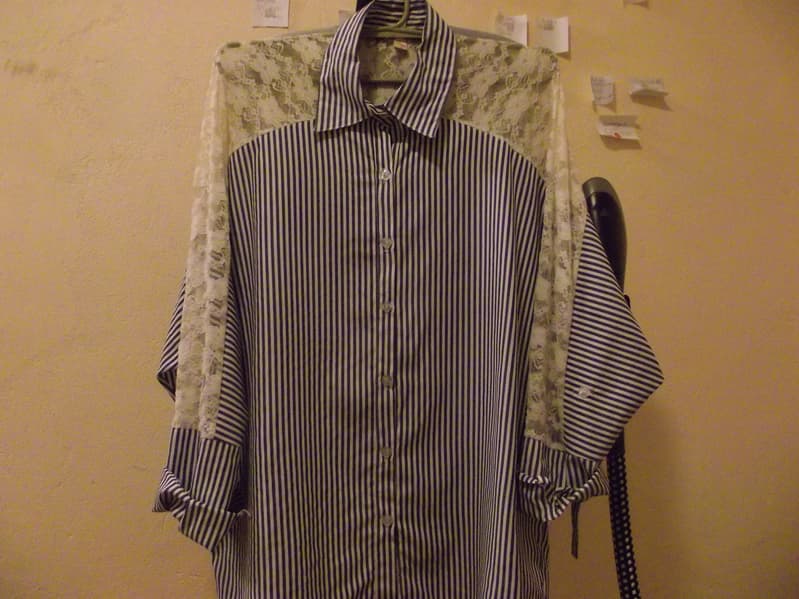 Результат оказался скромнее. Пробовали три режима, крупные заломы требуют усилий и большего времени, чем при работе с обычным утюгом. В целом вещь выглядит свежей, опрятной. Из-за предпринятых усилий и дополнительного использования насадки при работе с воротником и боковыми швами и подмышечной зоной не очень рационально тратить время. Утюг проще.