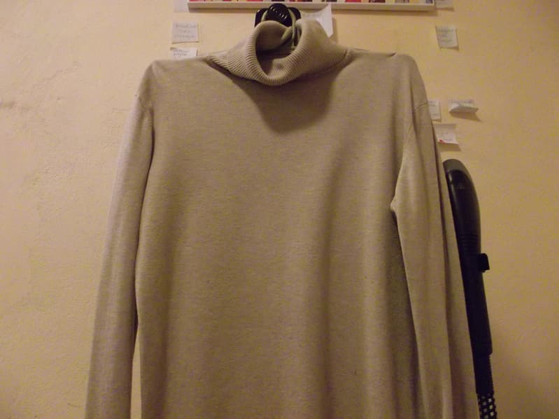 К шерсти традиционно легко налипает шерсть, пыль и мелкие загрязнения. Пальто повесили на плечики, вертикально очищали паром десять минут. Ткань хорошо освежилась, форма пальто не пострадала. Области карманов и воротника не до конца разгладились. Подобная чистка отлично подходит к подготовке изделия к летнему периоду, перед уборкой его в шкаф и чехол. Также это позволит быстро почистить его после легких загрязнений.