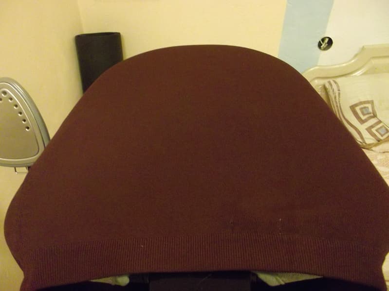 Тут вертикальный режим не подошел. По сути, мы гладили (прижимая утюжок к поверхности) в горизонтальном положении доски. Справился отпариватель хорошо, но размеры доски увеличили время обработки. Приятный бонус в том, что так комфортно реанимировать вытянувшуюся ткань, если нет необходимости «гладить» всё изделие.
