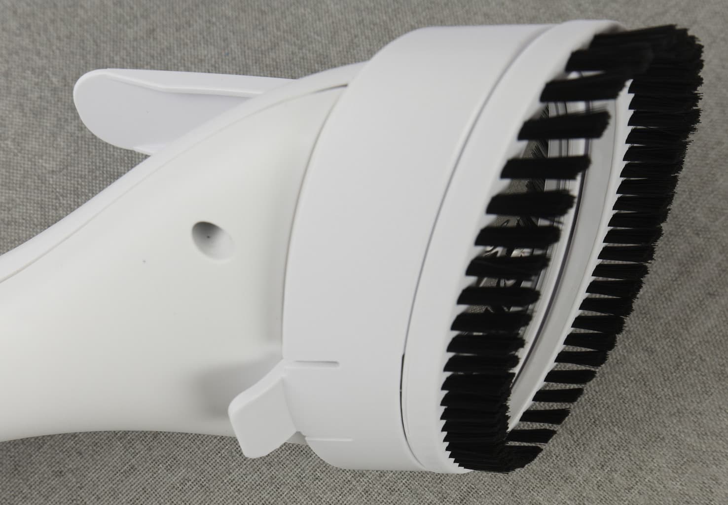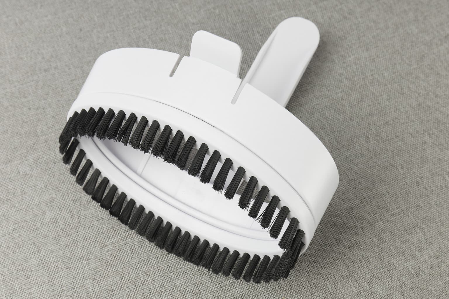 Насадка предельно комфортно одевается на утюжок, и отлично зарекомендовала себя в работе. Важный и большой плюс. Это помогало, например, очистить от пыли труднодоступные места (узкие поля фетровой шляпы), справляться с небольшими пятнами, налипшей грязью, неплохо освежать поверхность твида и харриса, т.е. шершавой и плотной ткани.