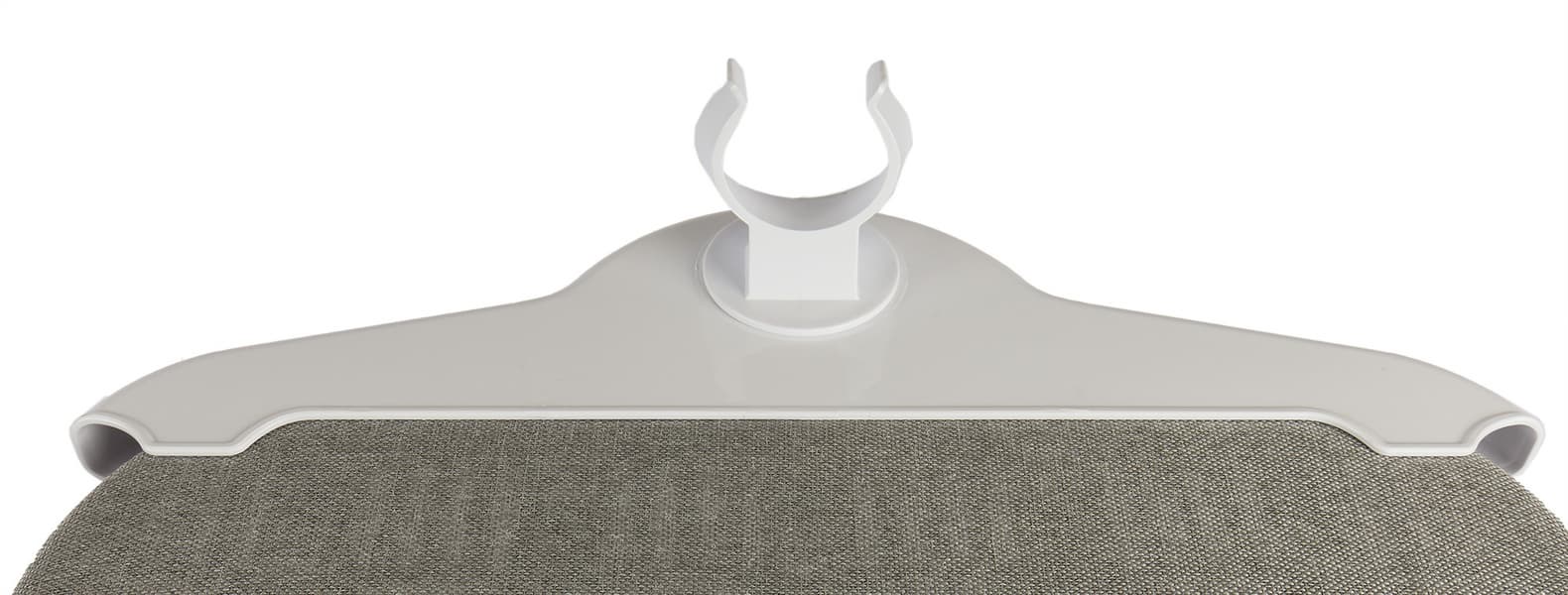 Ширина плечиков, которые образует верхняя насадка с еще одним держателем утюжка — 37,5 см. На держатель можно отдельно повесить вешалку с одеждой или использовать сами плечики.
