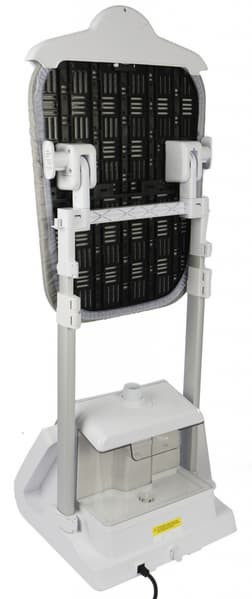 Гладильная доска размером 470×365 мм не только легко регулируется по высоте и положению, но и достаточна для проглаживания юбок, брючин и рубашек.