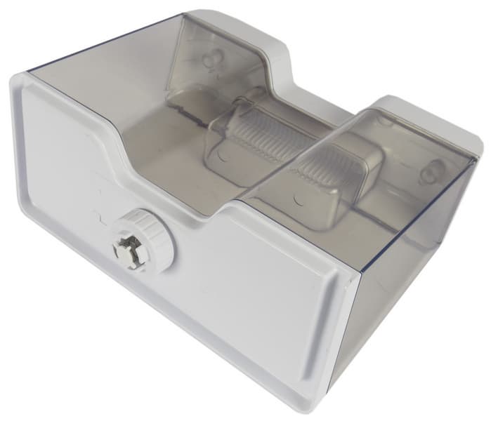 Съемный резервуар из прозрачного пластика имеет удобное место для подъема, снимается за секунды и встает на место как идеальный пазл. Внизу, у его основания, есть сопровождающая наклейка с предупреждениями о тонкостях процесса съема после окончания работы. Резервуару необходимо дать остыть.