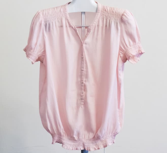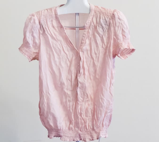 Блуза изготовлена из тонкого хлопчатобумажного полотна, имеет массу складочек, сборок и рукава-фонарики. Гладить обычным способом эту вещичку — задача трудоемкая.