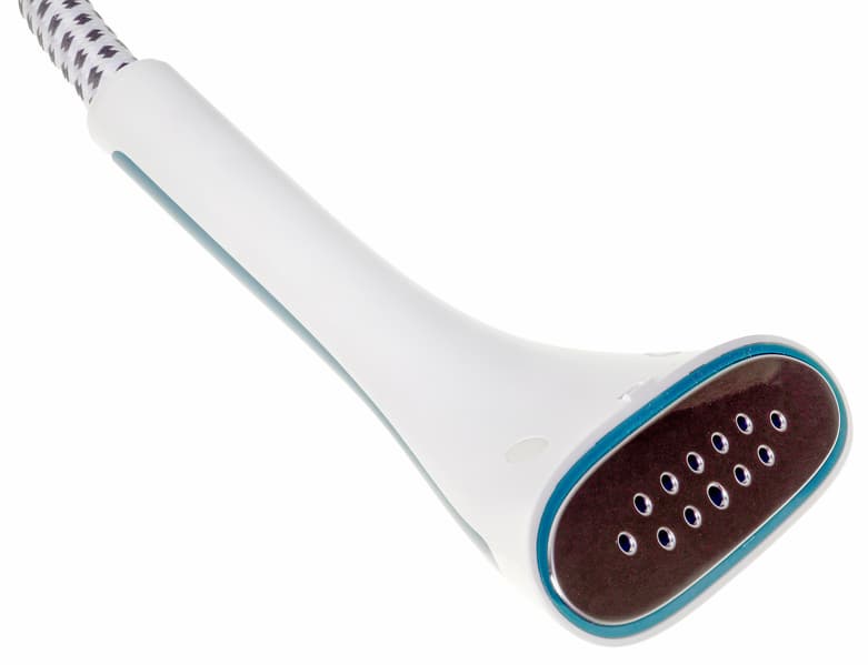 Паровой шланг длиной 1,2 м толстый, гибкий. Утюжок имеет обычную для такого типа устройств форму: длинная (около 13 см до расширяющейся части) ручка и металлическая рабочая поверхность, из которой выходит пар. Металл подошвы обработан хорошо — он идеально гладкий и блестящий. По центру размещены отверстия выхода пара. Сам утюжок очень легкий, основные усилия при манипуляциях с ним затрачиваются на удержание парового шланга.