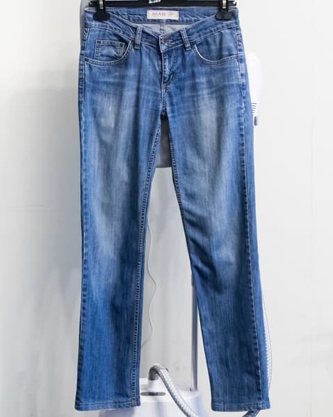 Джинсы после работы выглядят хорошо. Исчезли глубокие заломы и морщины, ткань стала гладкой и ровной.