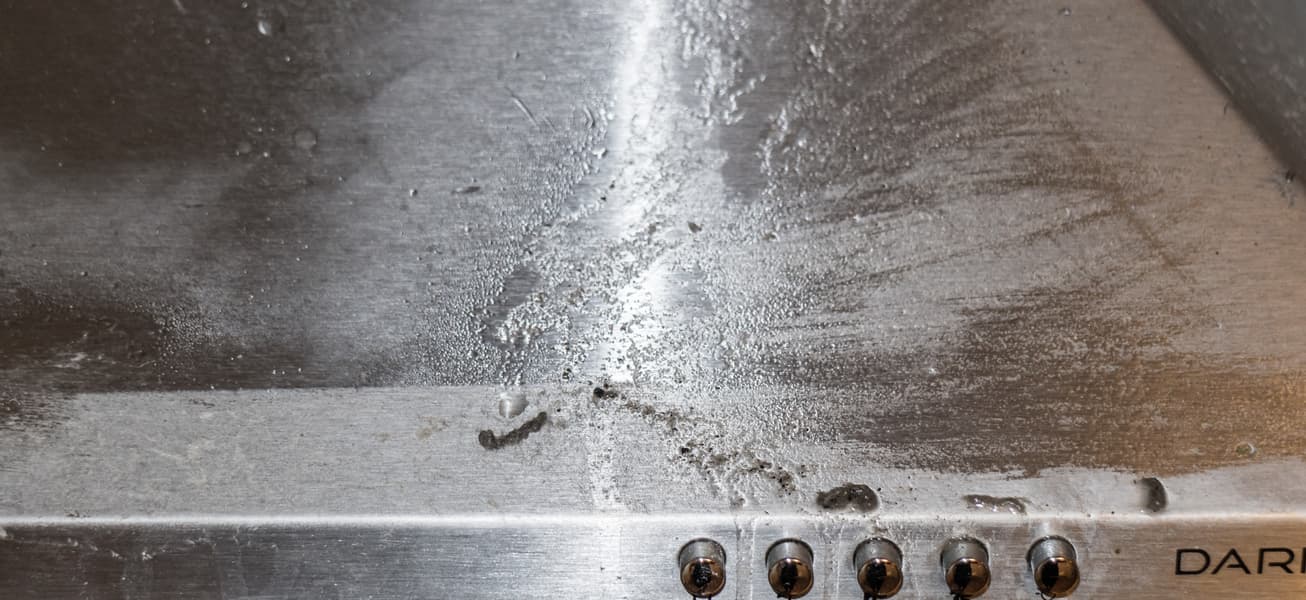 А вот кухонная вытяжка для тестов пароочистителя подошла идеально: вся ее внешняя поверхность была покрыта застарелой жирной пылью, скопившаяся за несколько, хм-хм, месяцев. Чистый блестящий участок по центру — след от висевшего там листа формата А4.