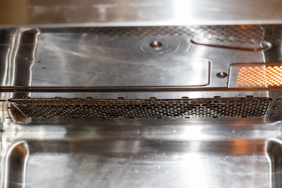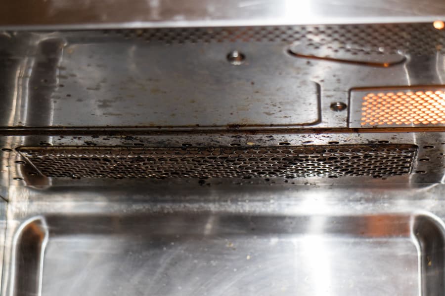 Точнее, ее внутренняя поверхность. Еще точнее — потолок, на котором скопились застарелые и отлично засохшие за годы эксплуатации следы от жира при использовании гриля.