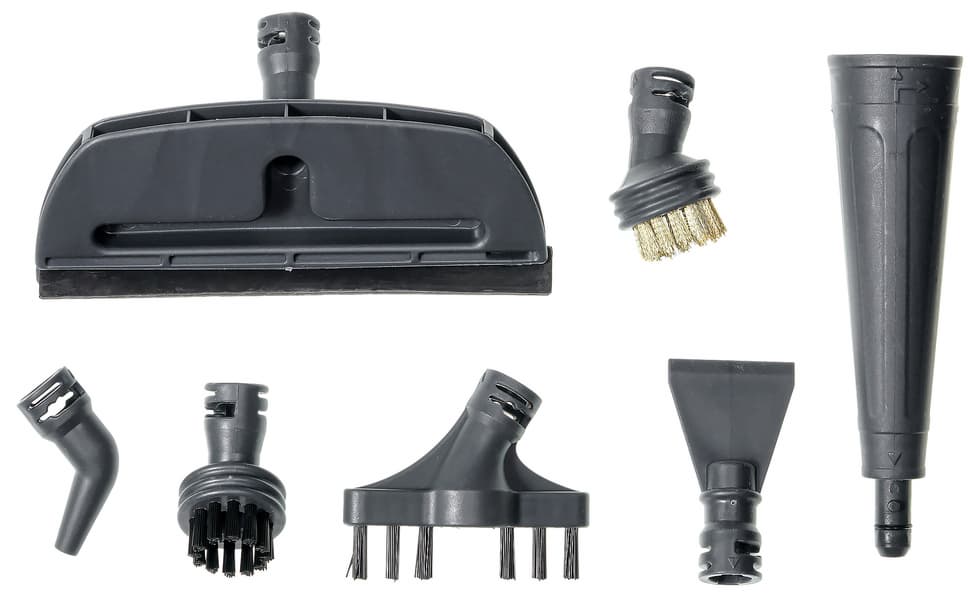| Аксессуары | струйная насадка, угловая насадка, круглые нейлоновая и латунная щетки, скребок, скребок для стекла, щелевая щетка, текстильная насадка для отпаривания |