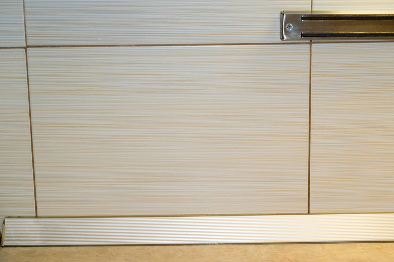Под «плинтусом» мы подразумеваем деталь, которая находится между стеной и кухонным столом. В нашем случае, у него не гладкая, а ребристая поверхность. Углубления лучше всего очищаются щеткой, поэтому на струйной насадке была закреплена соответствующая насадка. Для удаления загрязнений хватало одного-двух проходов пароочистителем. Затем мы протирали поверхность хорошо отжатой тряпкой.