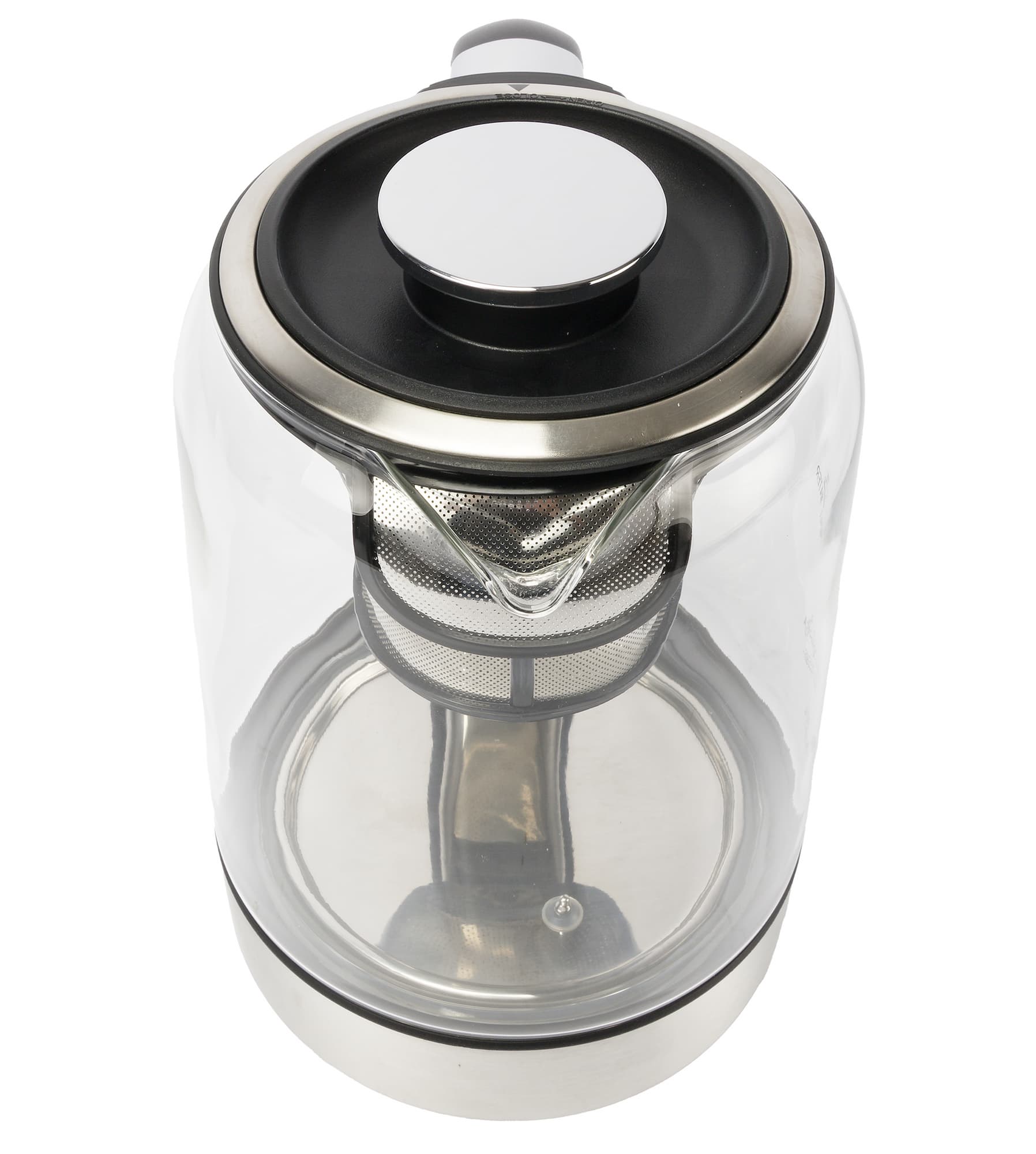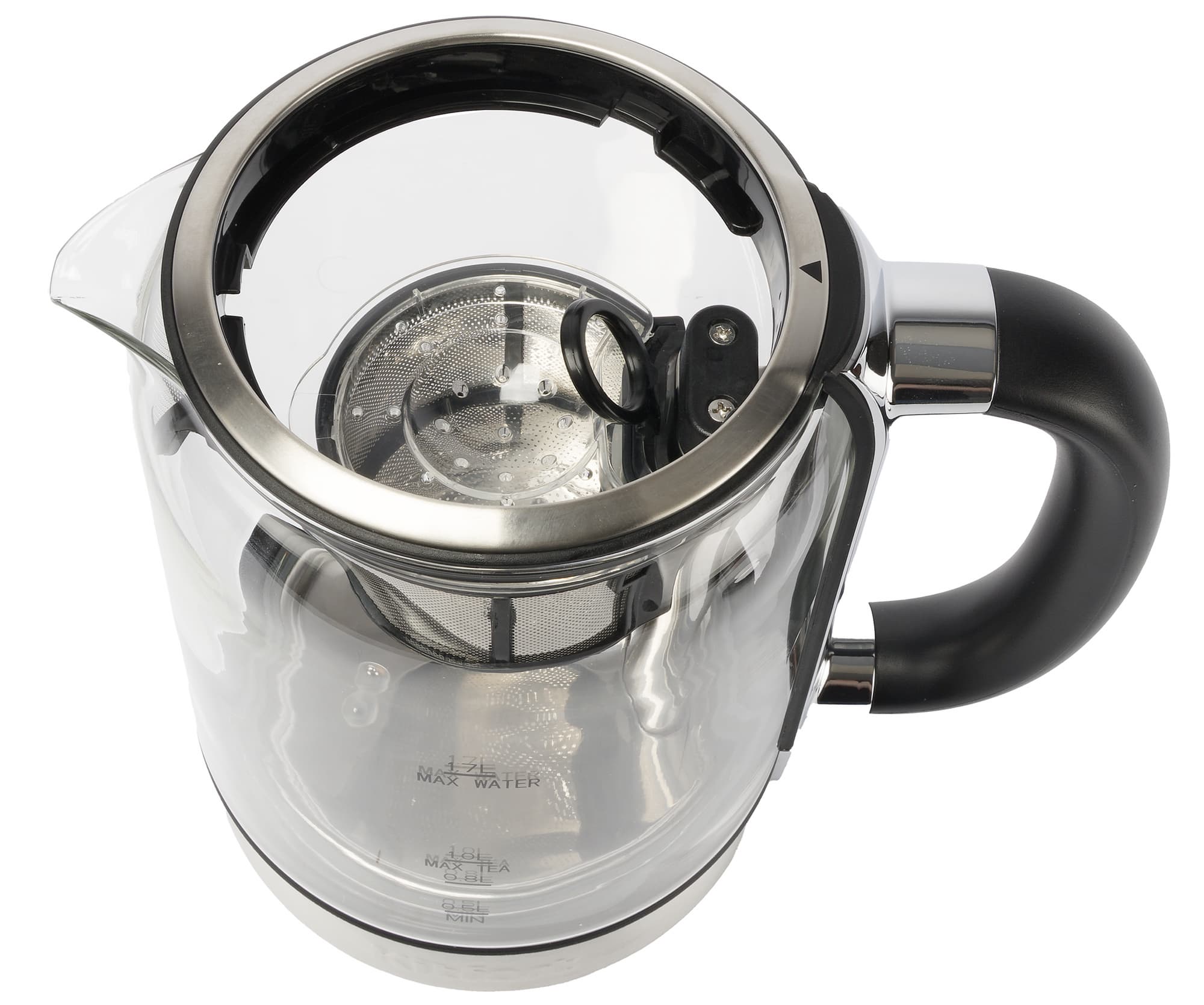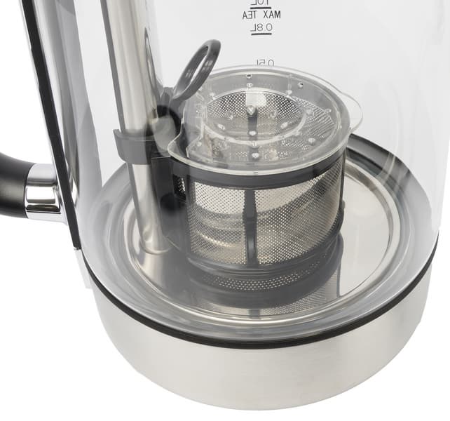 Для фильтрации неизбежно попадающей в колбу чайной пыли стеклянный носик снабжен стальной сеткой с микроперфорацией. Фильтр может извлекаться вместе с пластиковым ободком, обрамляющим край колбы.