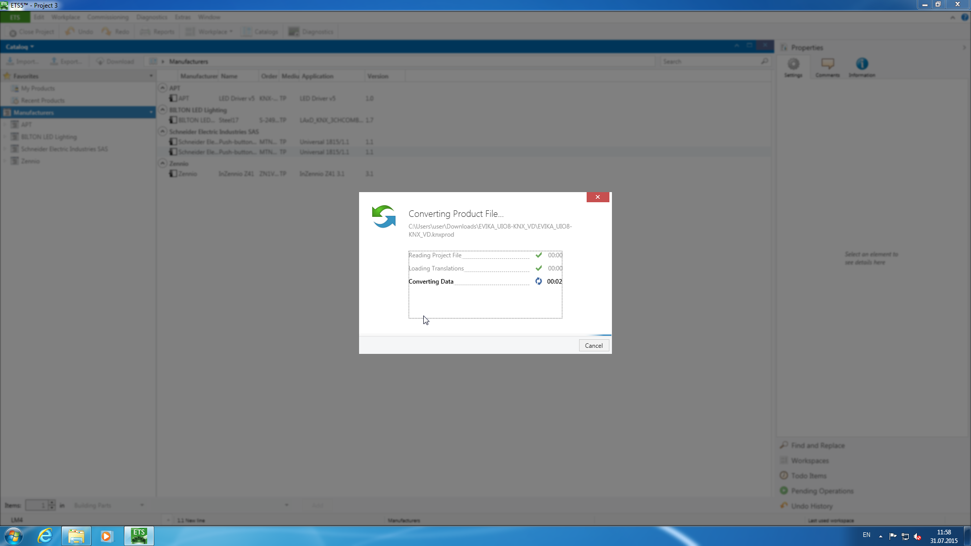 Как мы говорили выше, для успешного программирования устройства необходимо, что бы в каталоге присутствовало его описание в специальном формате. Эти файлы конфигурации предоставляет производитель, или же можно воспользоваться встроенным в программу ETS электронным каталогом.