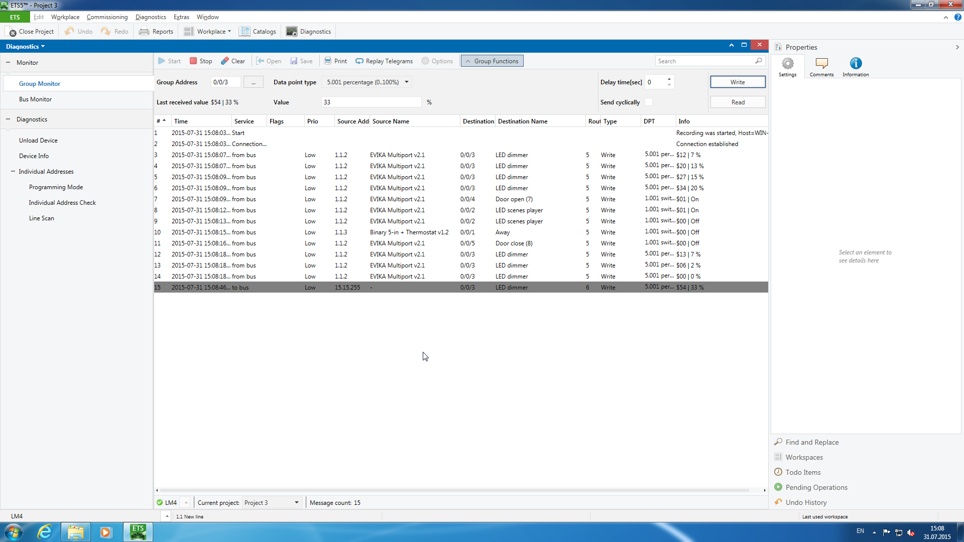 Ну и конечно не стоит забывать, что после завершения программирования системы автоматизации желательно проверить ее работоспособность. Здесь могут быть полезны такие функции ETS как монитор шины и монитор групповых адресов. В первом случае обязательно подключение к KNX через мосты в RS-232 или USB, а контроль групповых операций возможен и через IP.