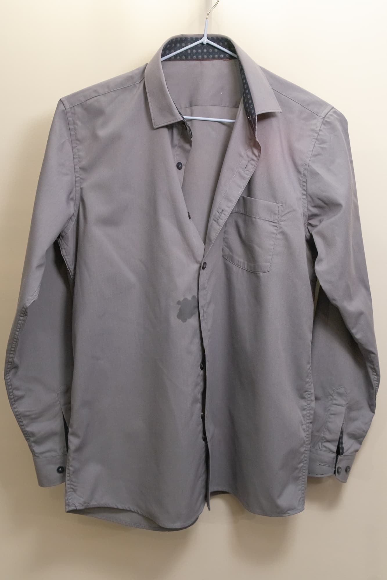 Форма подошвы утюга одинаково хорошо разглаживала как широкие, так и узкие места изделия, легко проходя между пуговицами, по рукавам и верхней части спинки. На фото видно пятно от воды, оно было единственным за все время глажки и высохло буквально за минуту, не оставив следа.