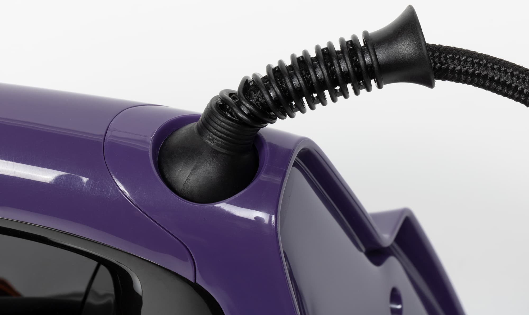 Двухметровый шнур электропитания крепится к корпусу шаровым шарниром, исключающим запутывание шнура.