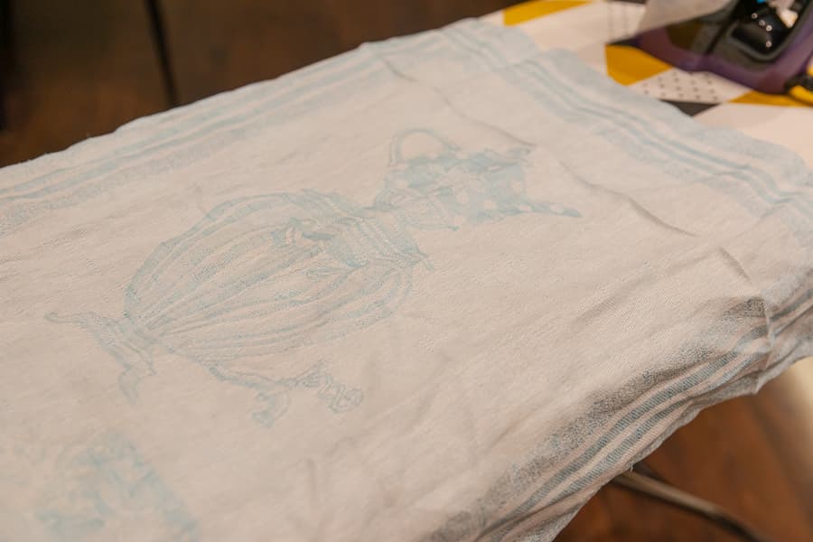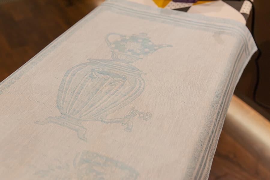 Мятые полотенца из плотной ткани, состоящей на 50% из льна и на 50% из хлопка, обрабатывались также на режиме III с постоянной подачей пара. Регулятор пара мы передвинули на максимум.