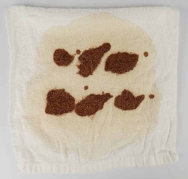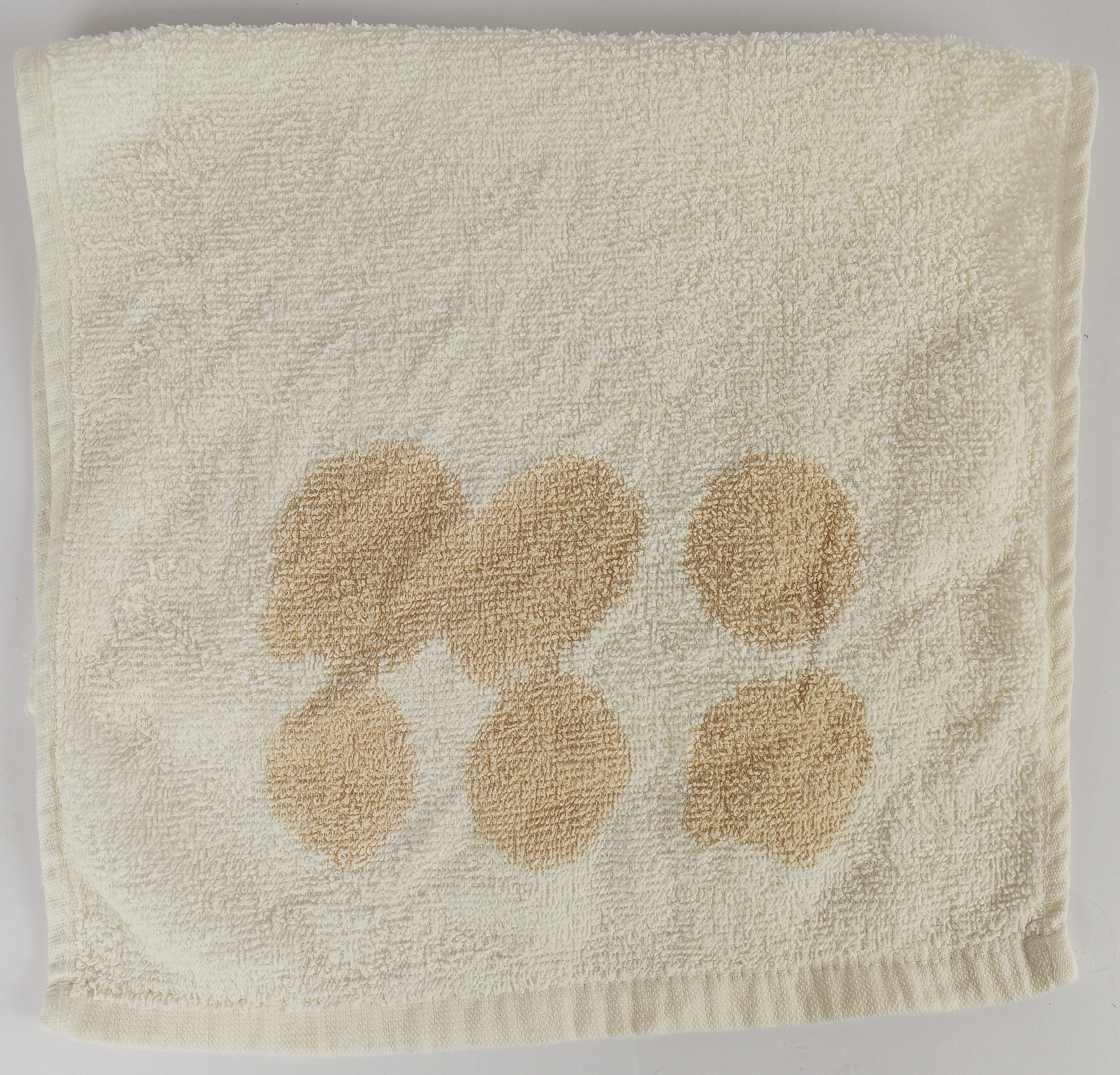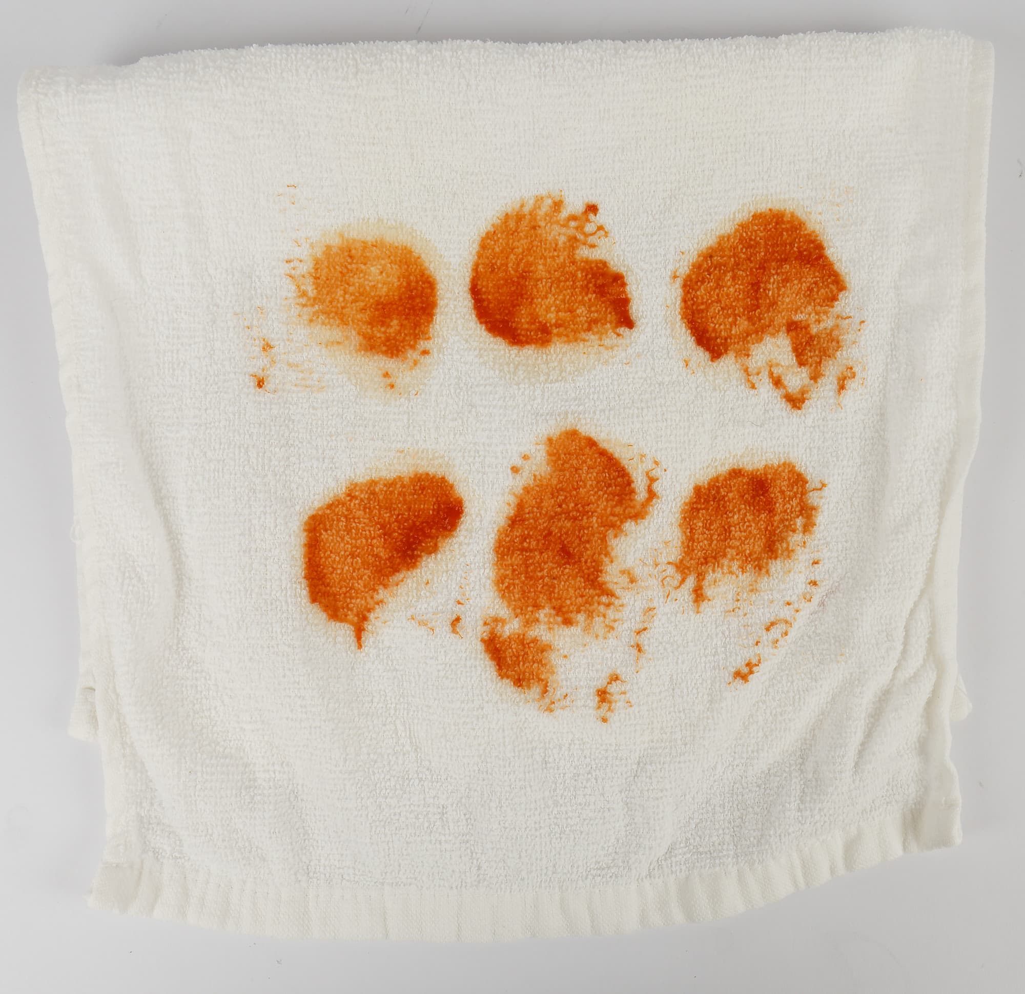 На каждое полотенце мы налили свое вещество: красное вино, соевый соус, кетчуп, кровь и какао.
