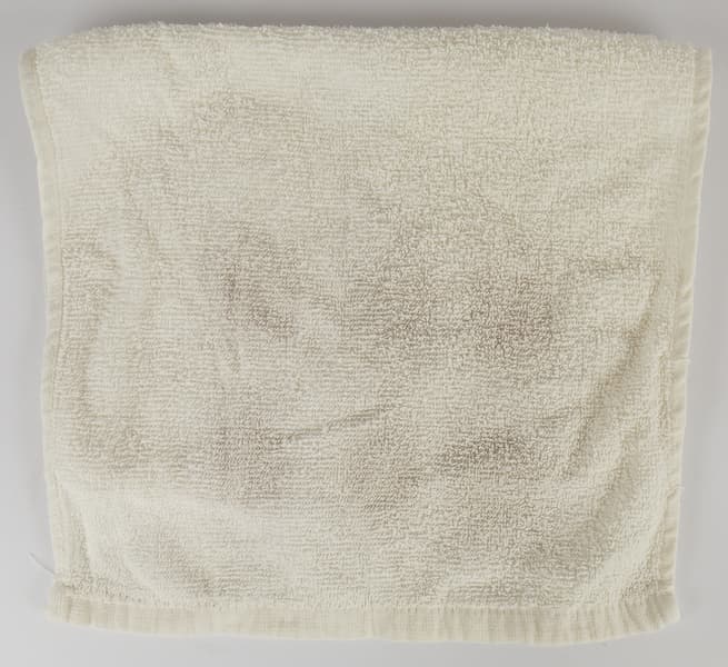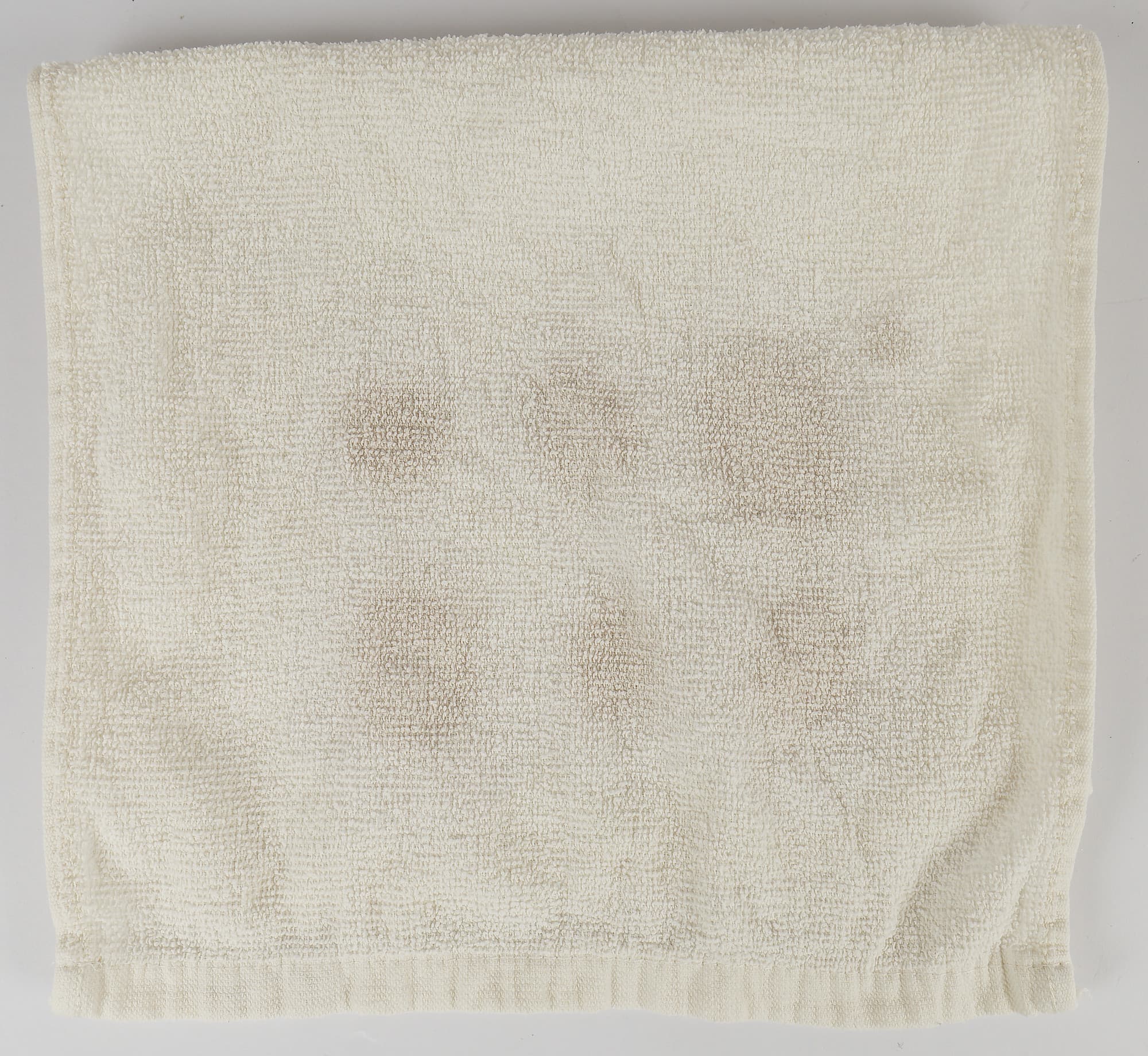 Чтобы полностью удалить следы загрязнений, мы воспользовались отбеливателем и простирали ткань еще раз на максимальной температуре.