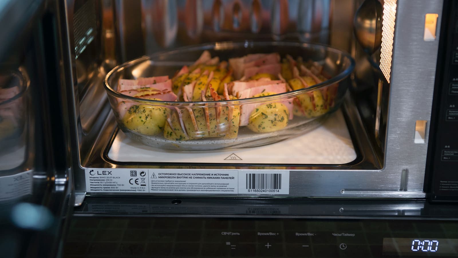 Как показало тестирование, мощности Lex Bimo 20.07 BL вполне достаточно, чтобы разогреть обед или приготовить незатейливое блюдо, но есть несколько моментов. В процессе готовки мы обнаружили, что продукты, расположенные в ближнем правом углу, готовятся медленнее. Для равномерного приготовления в процессе стоит пару раз, как минимум, повертеть блюдо разными сторонами.