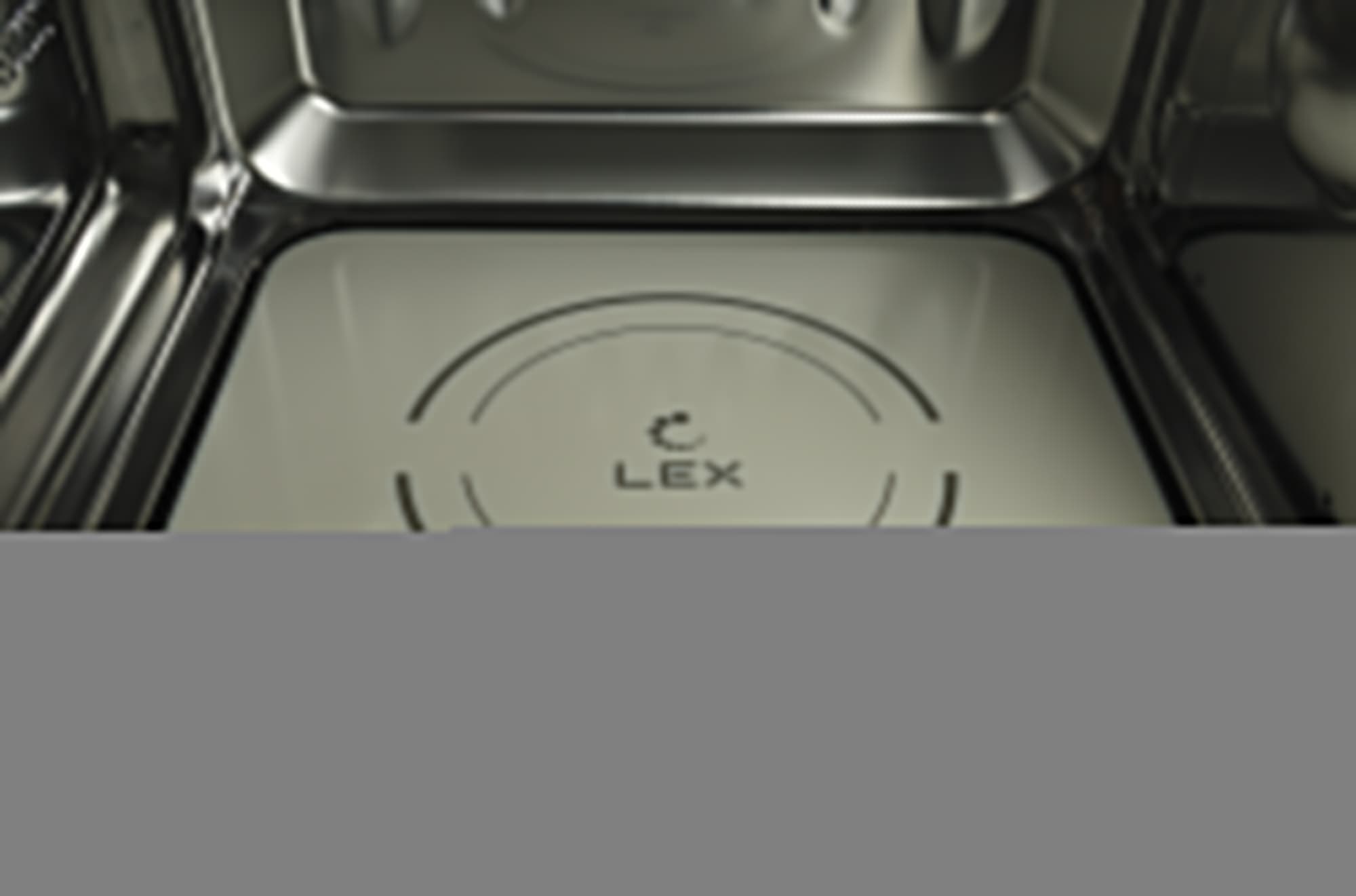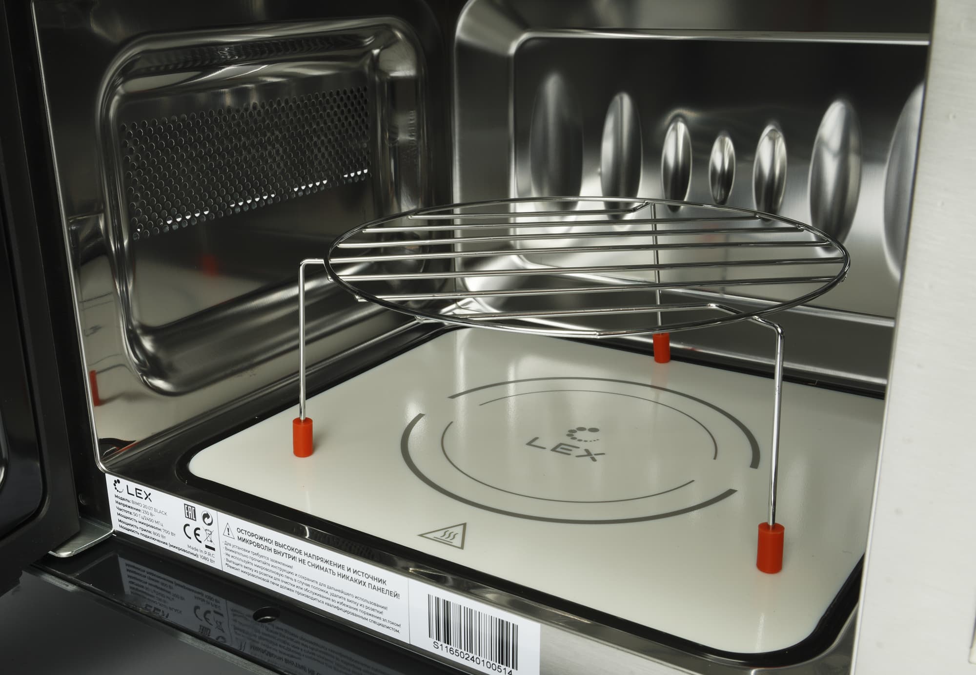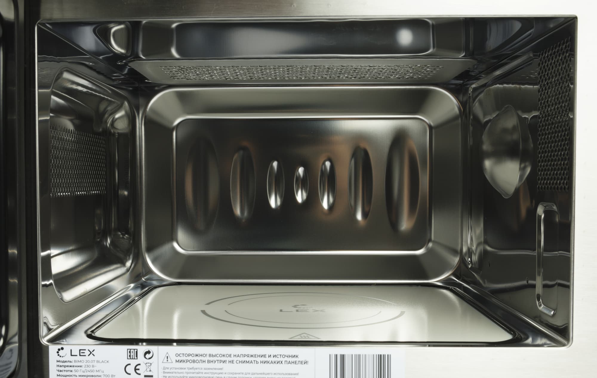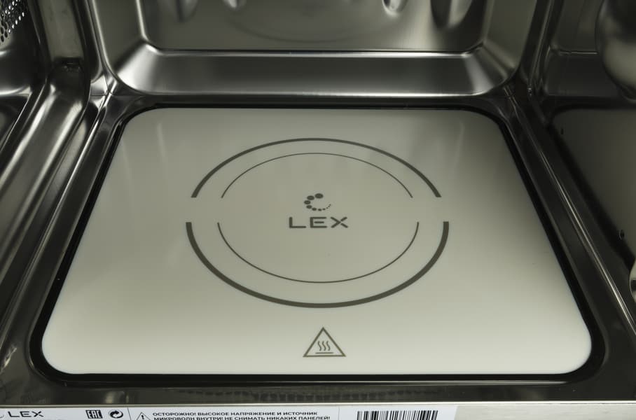 В микроволновке Lex Bimo 20.07 BL реализована технология панельного нагрева. Никакого крутящегося стеклянного поддона — только гладкая керамическая поверхность с уплотнителем по периметру.