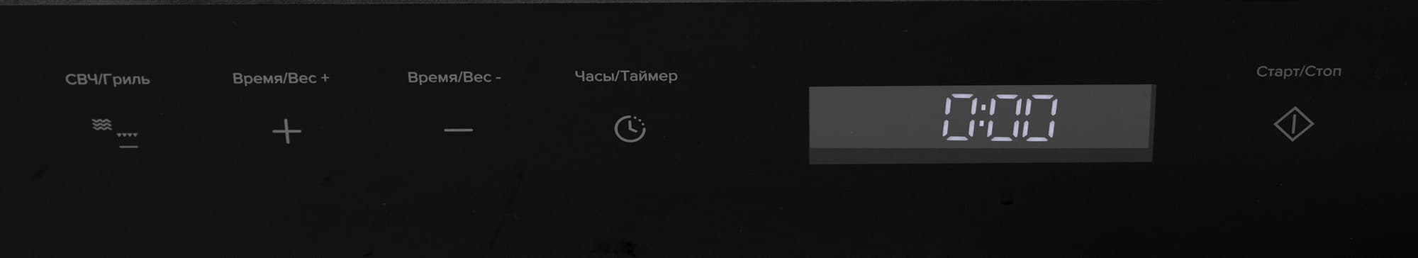 - СВЧ/Гриль — выбор мощности микроволн/включение гриля или автоматической разморозки по весу до 2 кг