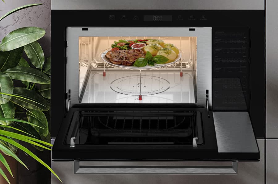 Встраиваемая микроволновая печь Lex Bimo 25.03 BL проявила себя как удобное эффективное устройство, одинаково хорошо подходящее и для простого разогрева, и для приготовления полноценных блюд. Вместительная камера с комплектной решеткой для гриля позволяет готовить довольно крупные порции за один раз, а отсутствие традиционного поворотного поддона дает возможность использовать более крупную посуду самых разных форм.