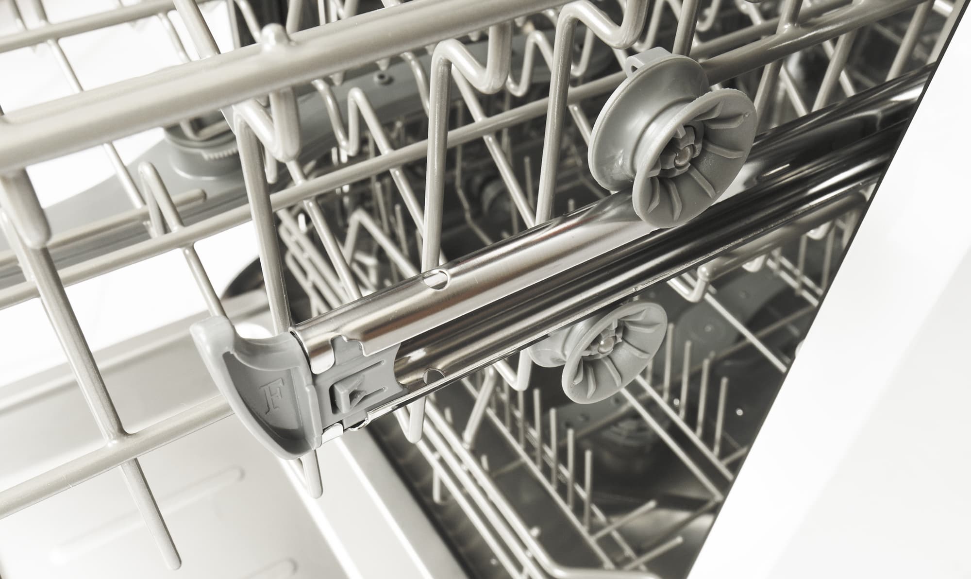 Боковые стенки посудомойки гладкие, окрашенные белой эмалью.