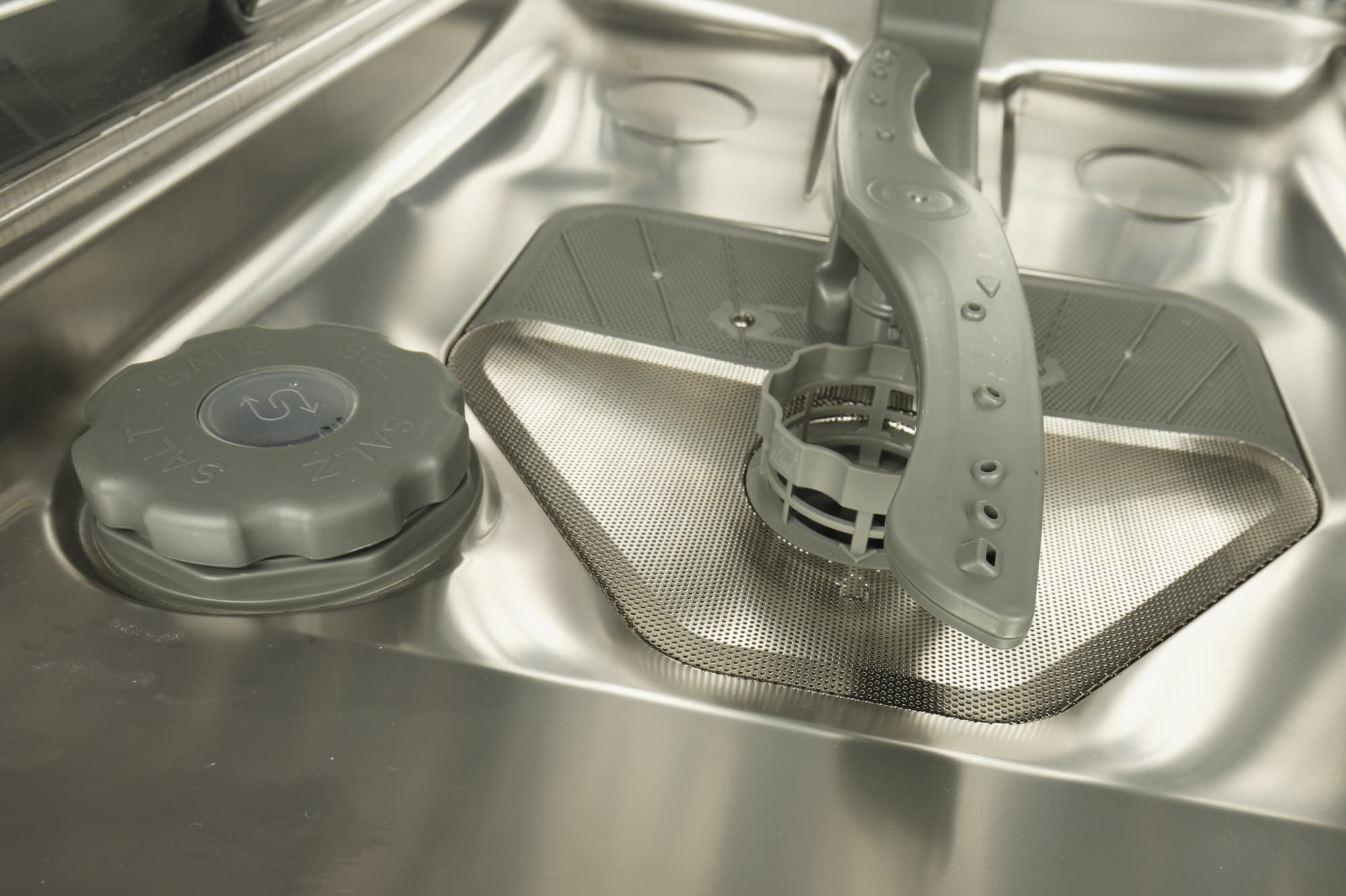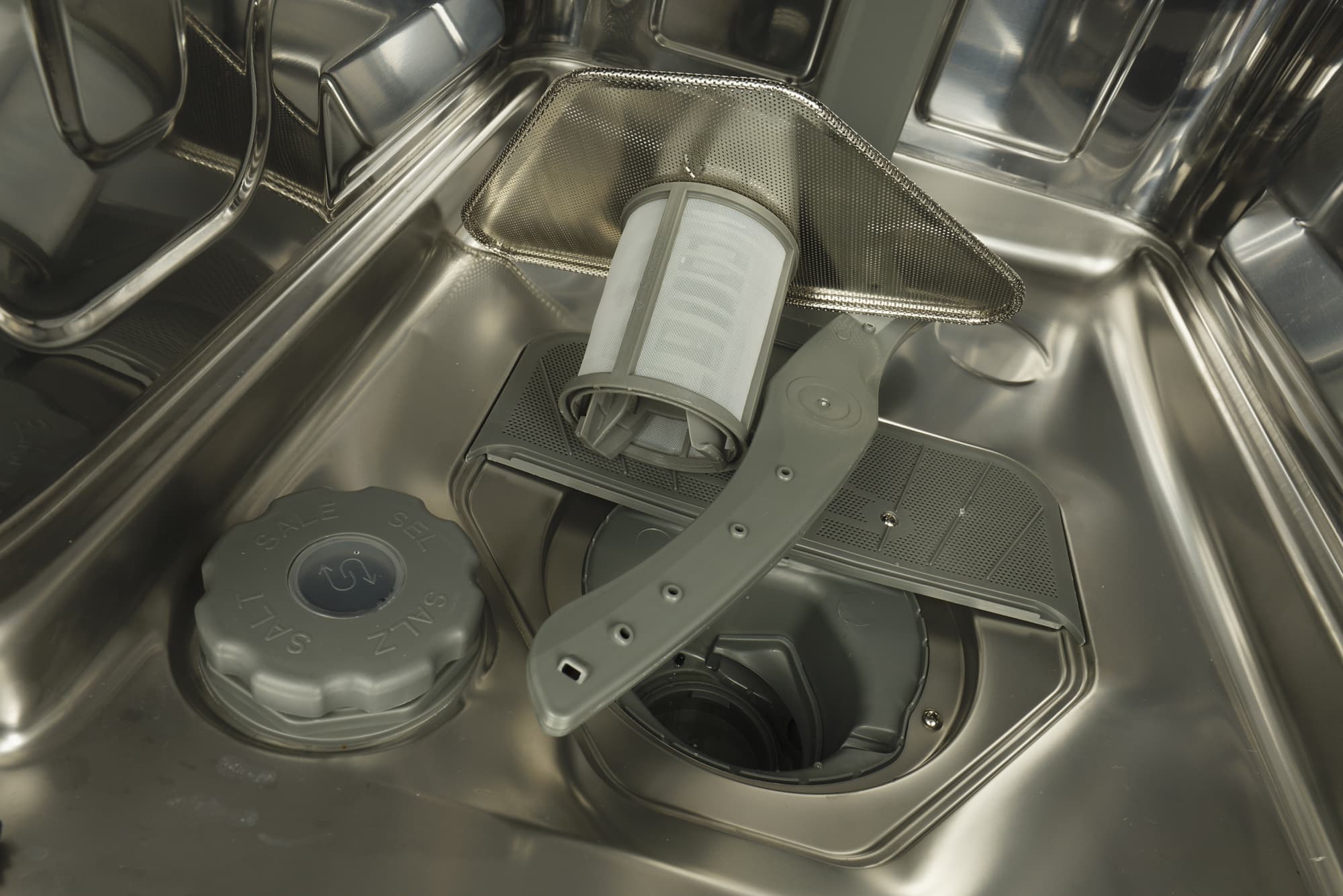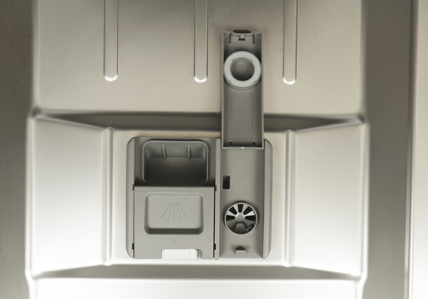 На дне бака из нержавеющей стали у Lex DW 4573 WH, как и у подавляющего большинства посудомоек, находятся нижний импеллер, крышка фильтра и пробка отсека для соли.
