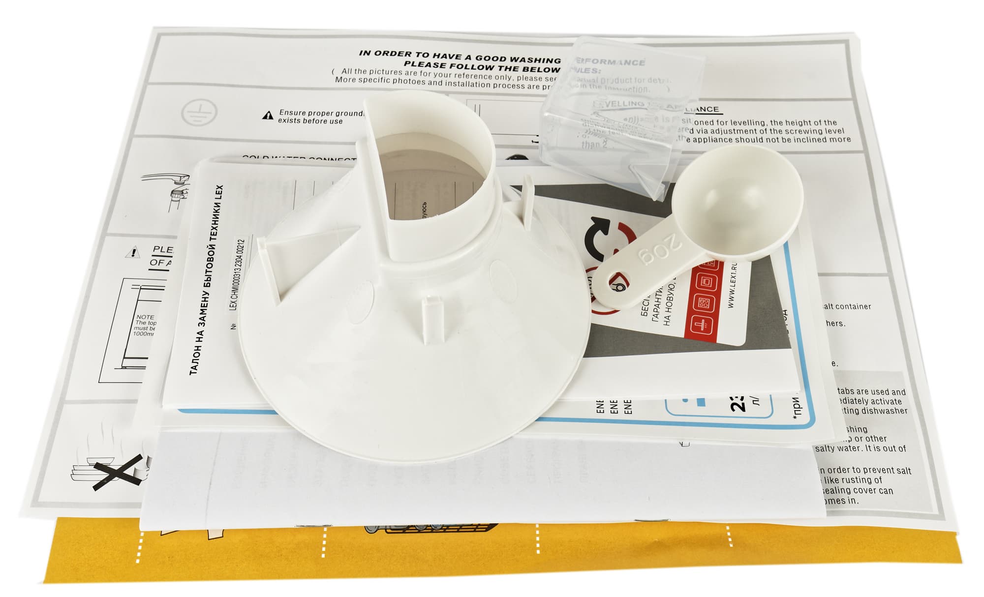 У Lex DW 4573 WH есть подсветка бака. Эта опция нечасто встречается в посудомоечных машинах, а жаль: дополнительное освещение позволяет загружать посуду в бак и вынимать ее даже при приглушенном свете на кухне — и не забывать в корзинах мелкие предметы.
