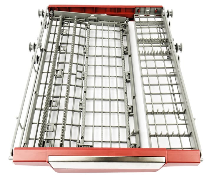 Наличие отдельной полки для столовых приборов кажется нам существенным плюсом: с такой конструкцией не приходится нагибаться к нижней корзине ради каждой чайной ложки. А вот недостаточную степень трансформируемости средней полки мы относим к недостаткам конструкции: для идеала ей не хватает возможности сложить направляющие и, как нам кажется, второй откидывающейся полки.