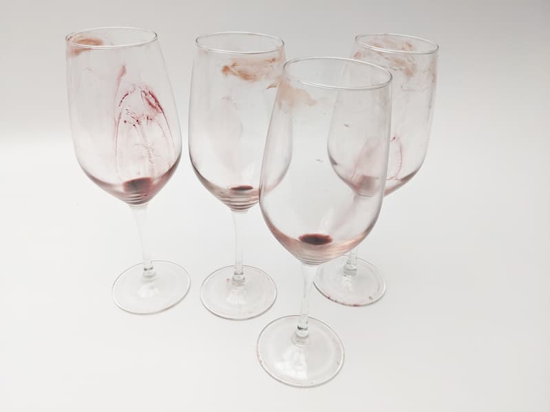 В этом тесте мы пачкаем стеклянные бокалы жирной губной помадой — как будто бы после вечеринки. Имитируя ситуацию, когда хозяева ушли на работу и вечером вернулись к необходимости всё убрать, мы оставили посуду сохнуть на стандартные 24 часа.