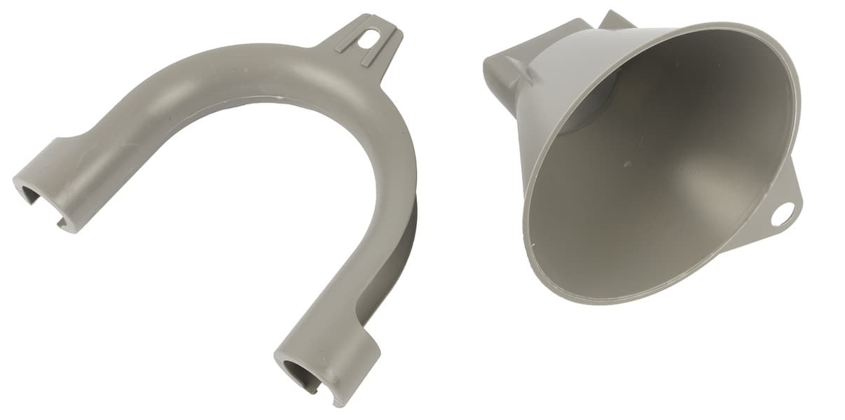 Держатель для сливного шланга и воронка для соли выглядят стандартно.