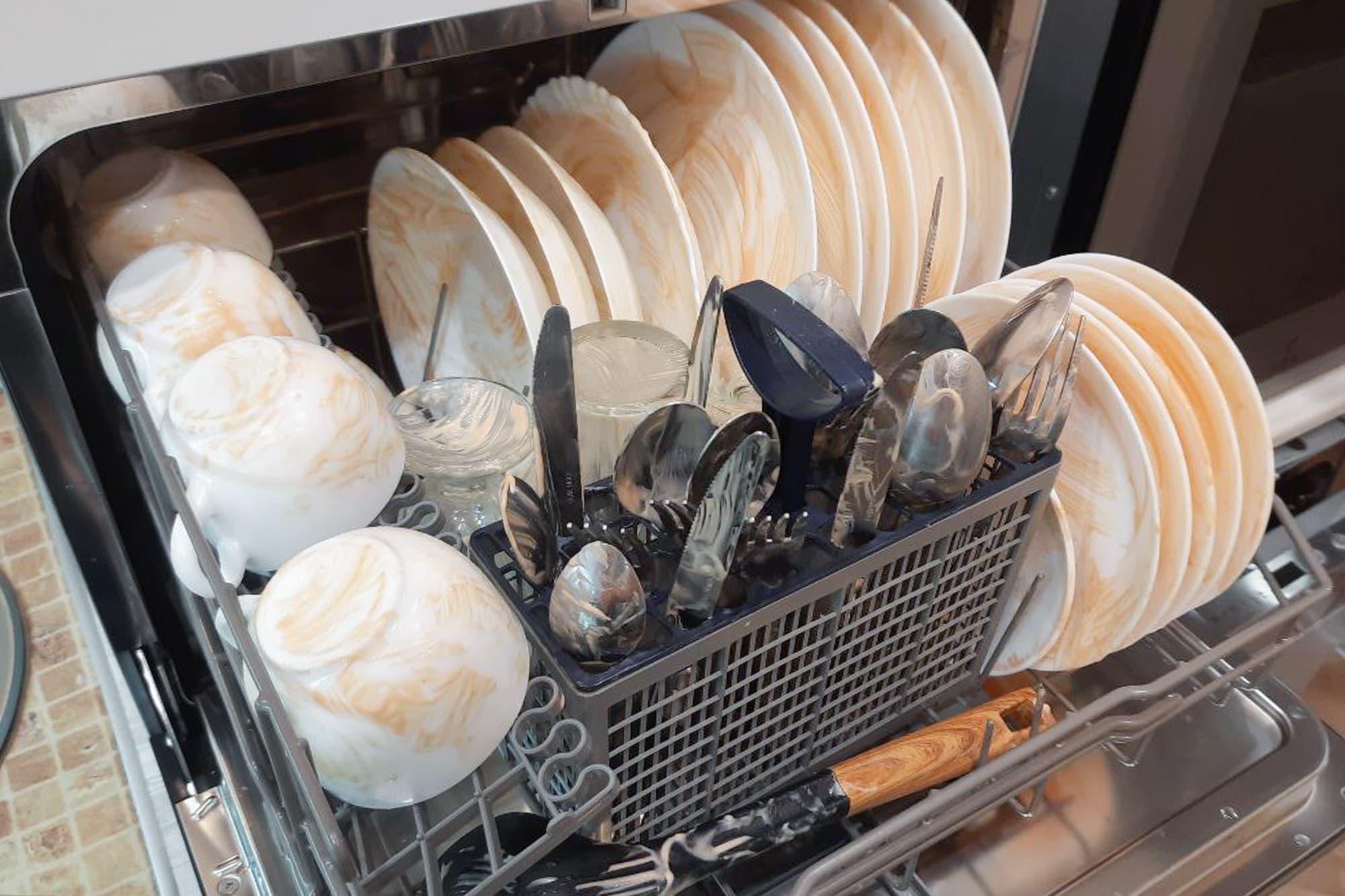 11 литров воды хватило, чтобы качественно помыть посуду, а вот саму себя машина сполоснула не очень тщательно.