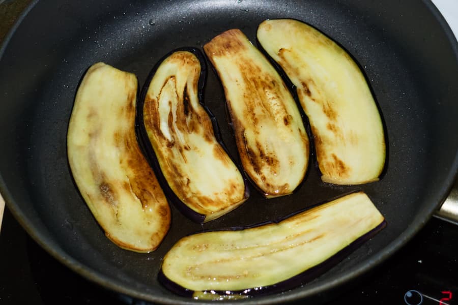 Ожидаемо быстрее готовились кусочки или их часть, которые были расположены над зоной нагрева. Жарили на седьмом уровне мощности — этого оказалось достаточно, чтобы ломтики не подгорали. Для того, чтобы обжарка была более равномерной, перемещали кусочки по площади сковороды.