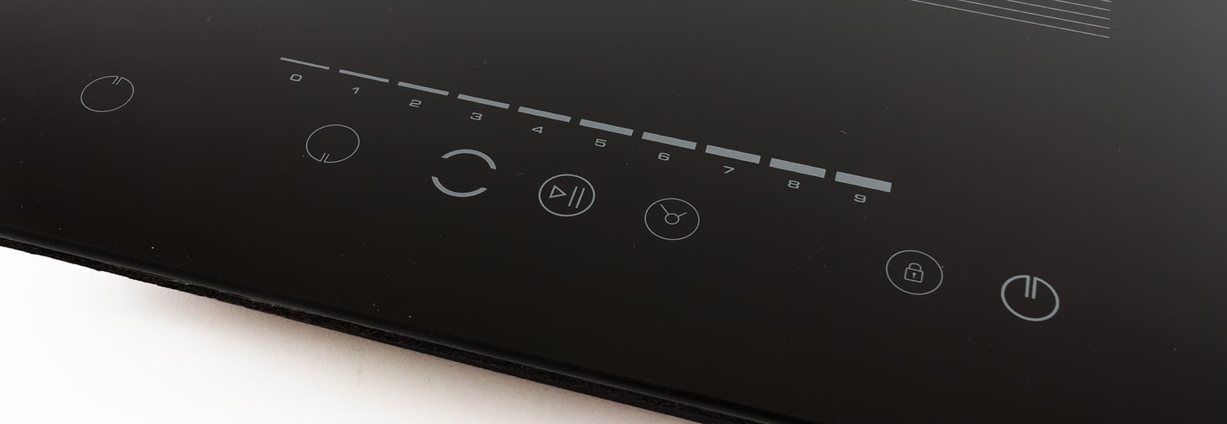 Приборная панель располагается спереди плиты и состоит из нижнего ряда сенсорных кнопок управления, обозначенных пиктограммами и верхнего ряда в виде черточек, которые служат для установки мощности или таймера.